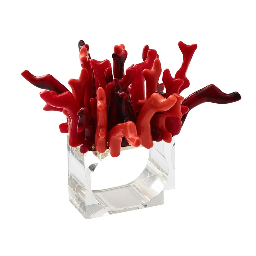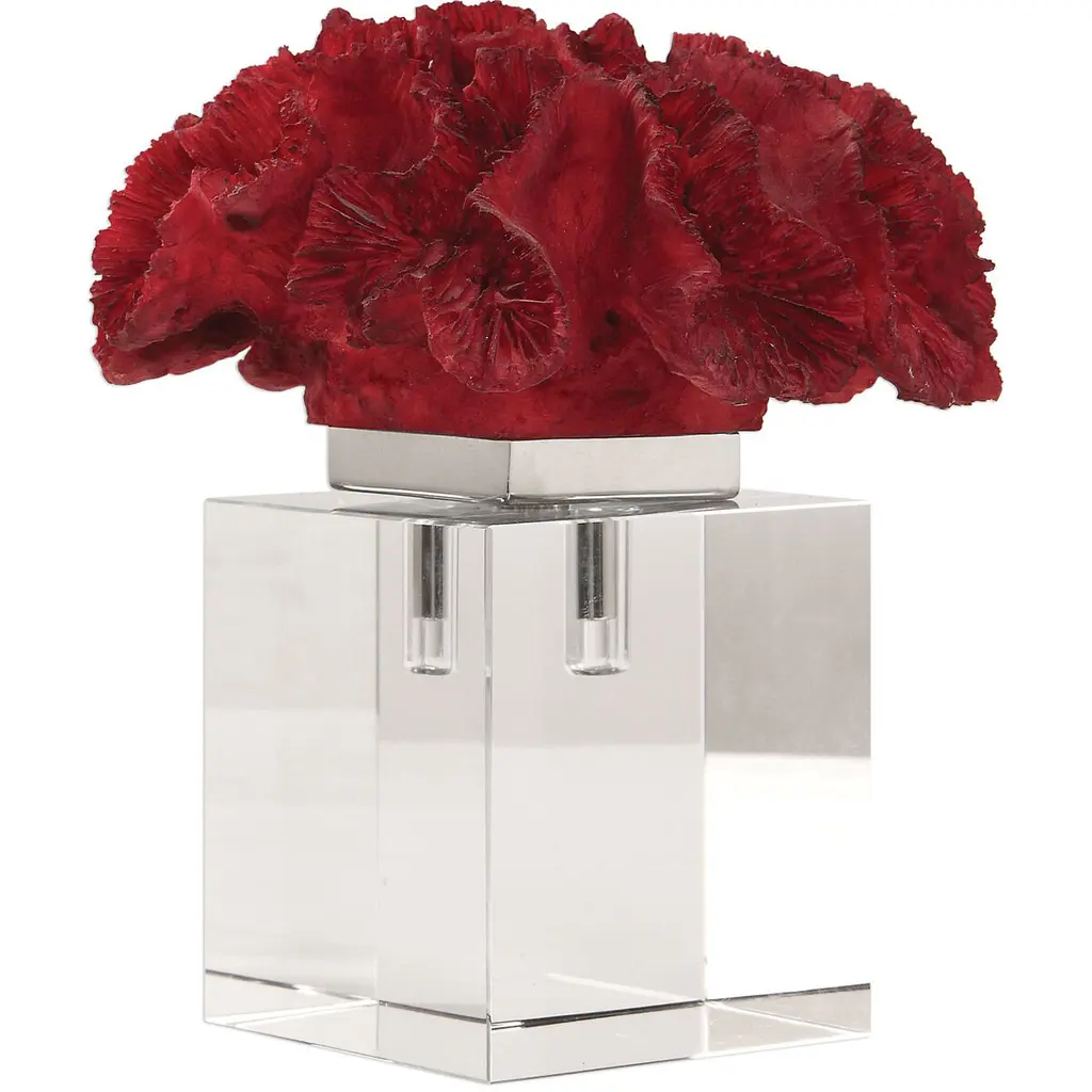 Red Coral Cluster Red And Crystal Table Top Accent