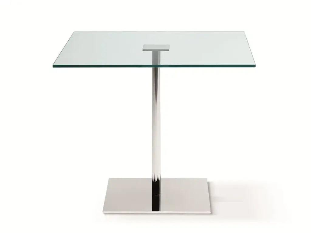 Euro Living Furniture is proud to introduce, the Reflection End Table. This classic ultra-modern design goes great with any contemporary home. This set is comprised of a rotating tempered glass rectangular glass top which expands, accompanied by a polished steel base. The versatility of this set allows it to easily pair with most home layouts, and has the capability to serve large groups easily.