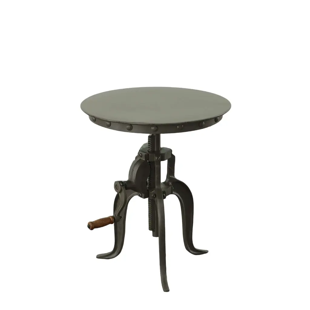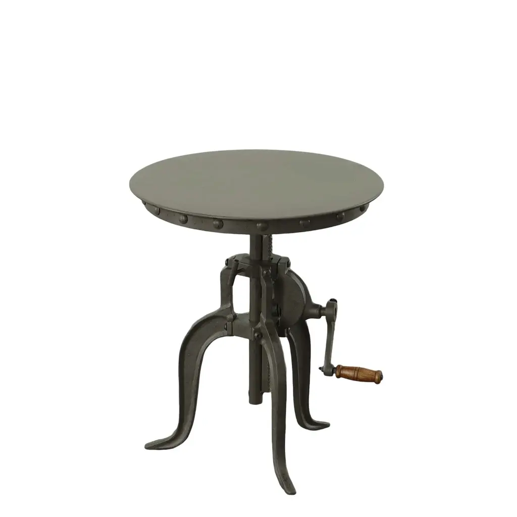 Add character and function to any space with our Regan Adjustable Accent Table—a striking blend of vintage charm and mechanical flair. Featuring a round top paired with a sturdy cast iron base, this table’s real showstopper is the working hand-crank that adjusts the height to suit your space and needs.Inspired by early industrial machinery, the iron base boasts sculptural curves and solid strength, while the wood top brings warmth and contrast to the design. Use it as a side table, plant stand, or unique nightstand—it’s as versatile as it is eye-catching.Perfect for farmhouse, rustic, or loft-style interiors, this table brings a bold, functional accent to your home.