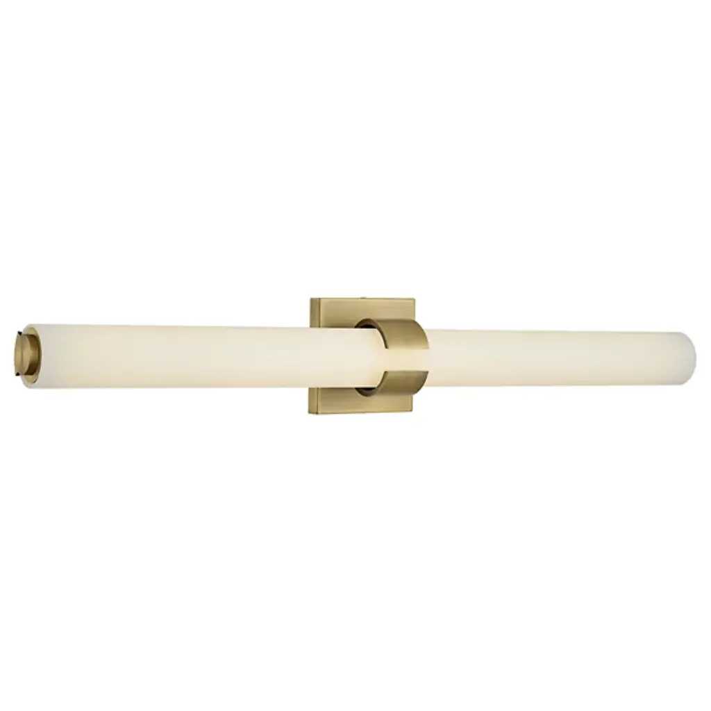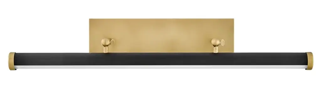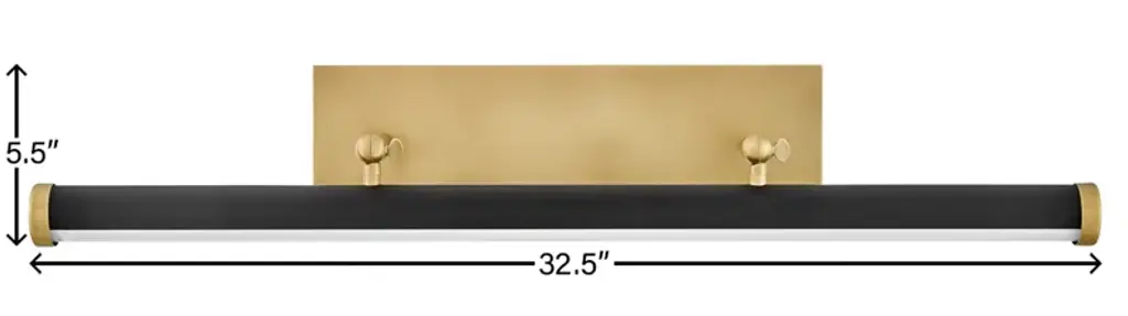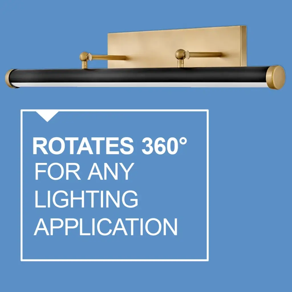 This 32.5" Integrated LED Accent Light rotates 360° to adjust precisely over artwork and architectural features in your home - or as a task light over a desk or nightstand. Slim, Modern, and affordable, this versatile picture light can be hardwired in any room. This cylindrical bar light has a Black-finished panel on top and a White Acrylic Lens below, with warm, textured Heritage Brass caps at either end. The Integrated LED is also dimmable. This accent light can be mounted up, down, vertical, or horizontal.
