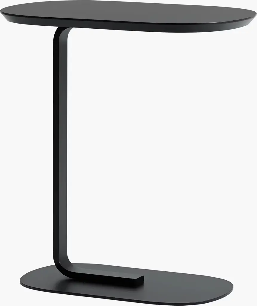The elegant Relate Side Table (2019) has two parallel planes connected via a C-shaped leg for a modern look. Pull it right up to a sofa or lounge chair to use as a laptop desk, or place it in virtually any space to hold various objects. Made in Denmark.
