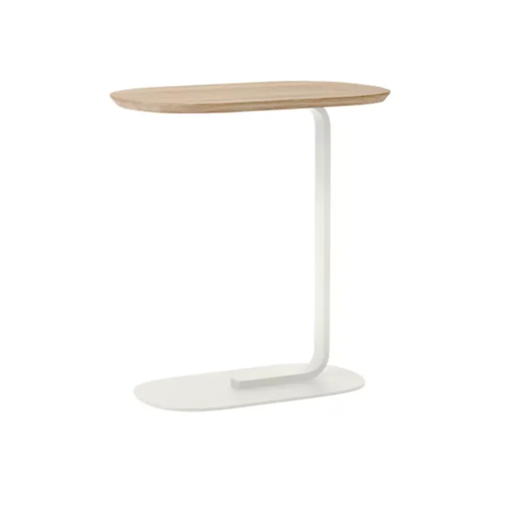 An elegant side table with two planes, connected through a graphic leg for a modern expression. Pull the Relate Side Table up to a sofa to use as a hot desk or place it in any space to hold various objects.