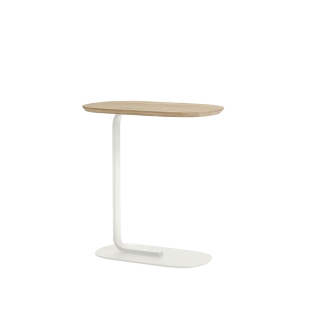 An elegant side table with two planes, connected through a graphic leg for a modern expression. Pull the Relate Side Table up to a sofa to use as a hot desk or place it in any space to hold various objects.