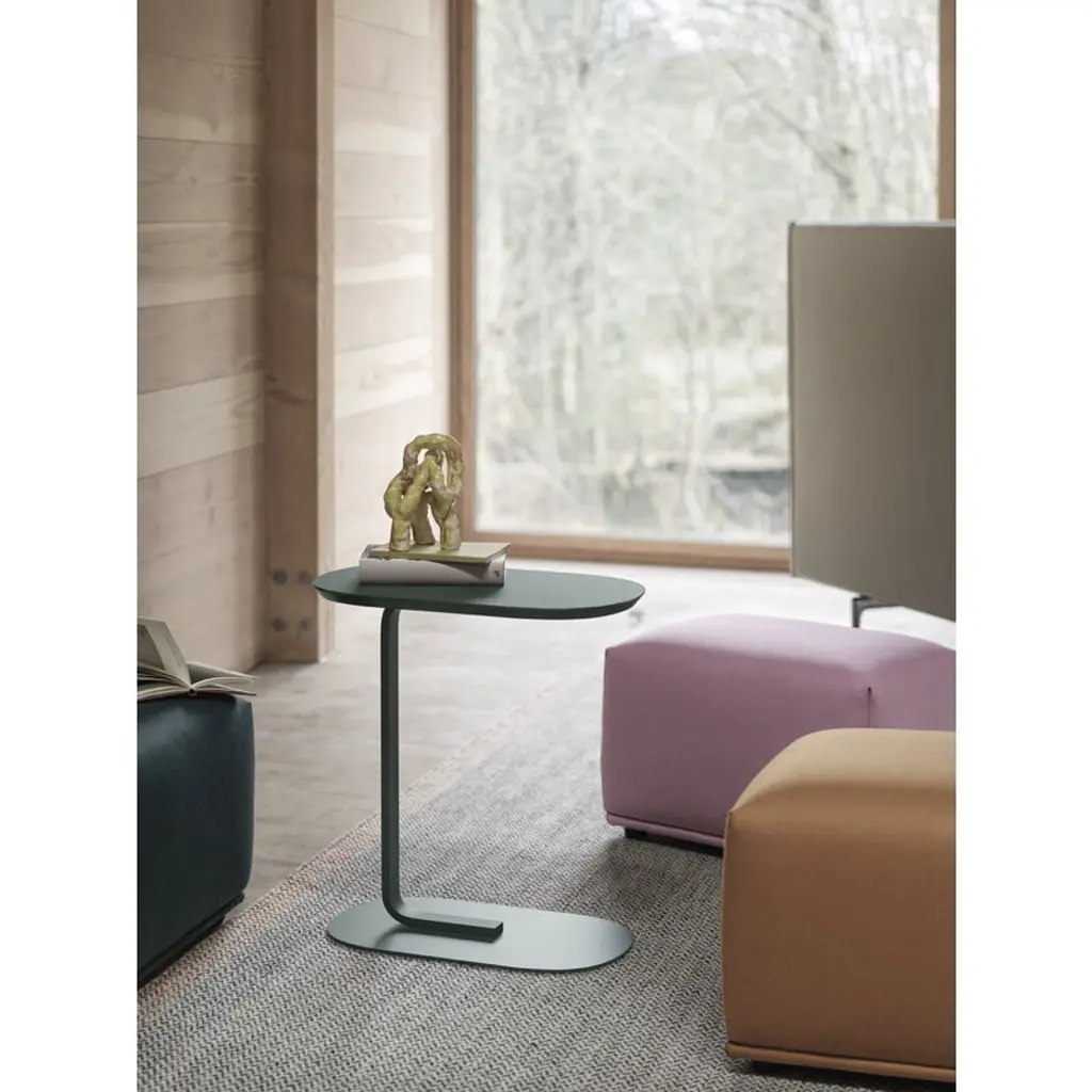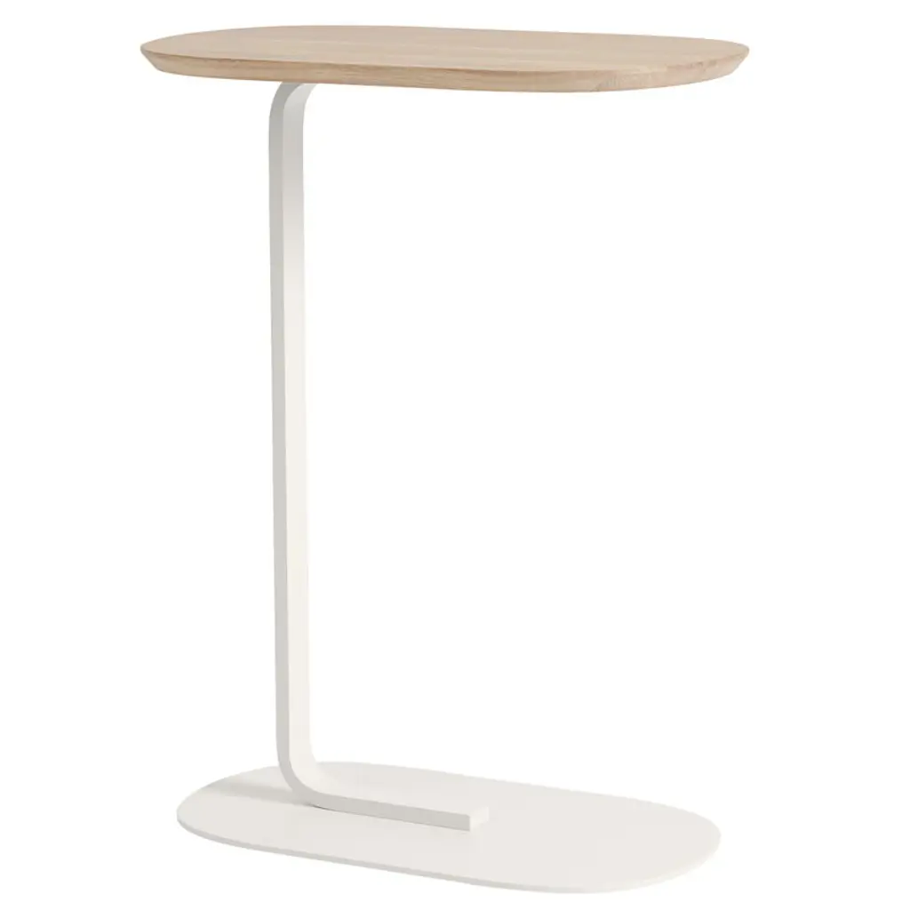 Muuto’s Relate side table, designed by the Swiss design studio BIG-GAME, is made up of two rounded planes connected by a single metal leg, bent to visually integrate to the top as well as the base. Due to the airy and light design, Relate can easily be moved to where it is needed; it fits perfectly as a night stand or a side table but can also be placed next to the sofa for your snacks or as a temporary workstation.