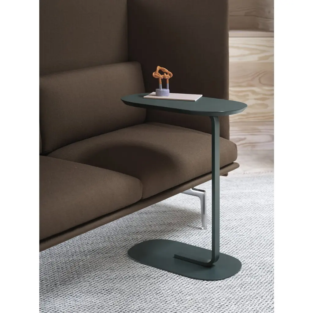 Muuto’s Relate side table, designed by the Swiss design studio BIG-GAME, is made up of two rounded planes connected by a single metal leg, bent to visually integrate to the top as well as the base. Due to the airy and light design, Relate can easily be moved to where it is needed; it fits perfectly as a night stand or a side table but can also be placed next to the sofa for your snacks or as a temporary workstation.