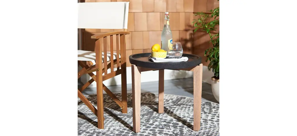 Evocative of serene tropical locales, this Reldon Side Table is the perfect addition to any outdoor oasis. Reldon's smooth, natural finished acacia pairs beautifully with its black concrete top, making it a smart and stylish must have for any porch or patio.
