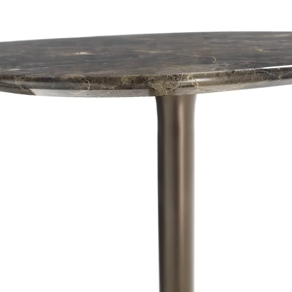 The Rendez-Vous Bistro Table features a sculpted base and column in a sleek chrome finish, with a painted option available for a customized look. Its 20mm thick marble top adds a touch of elegance and sophistication, perfectly balancing refined materials with contemporary design. A statement piece that seamlessly blends style and functionality, this bistro table enhances any luxurious setting.