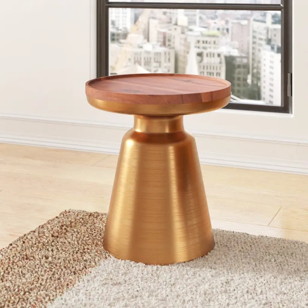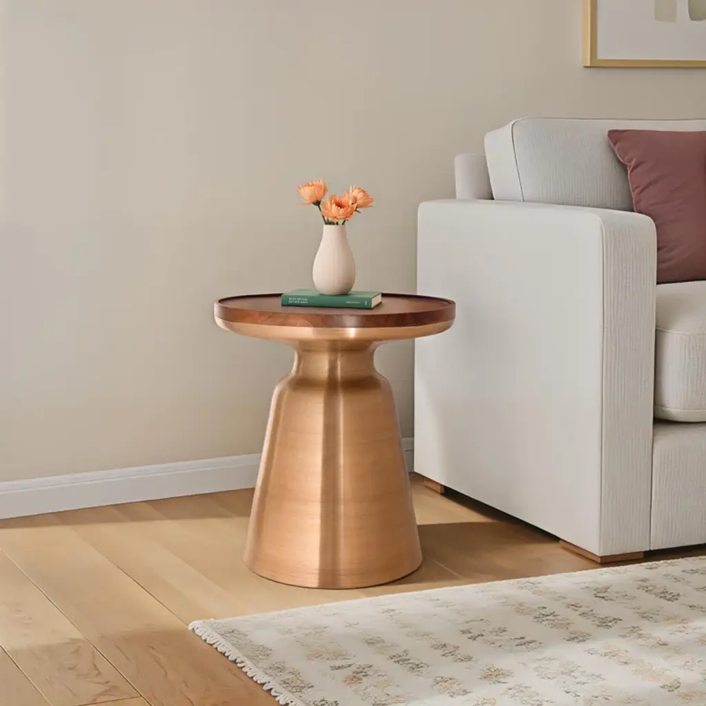 Elevate your living space with this elegant end table, where form meets function. Featuring a solid wood round top and an iron pedestal base, this table brings a touch of sophistication to any room. The kiln-dried wood ensures lasting quality, while the pedestal base adds a touch of refinement. Ideal for displaying your favorite decor or resting your evening cup of tea, this end table is a versatile addition to your home. Plus, with a 50 lb. weight capacity, it's ready to hold your cherished items.