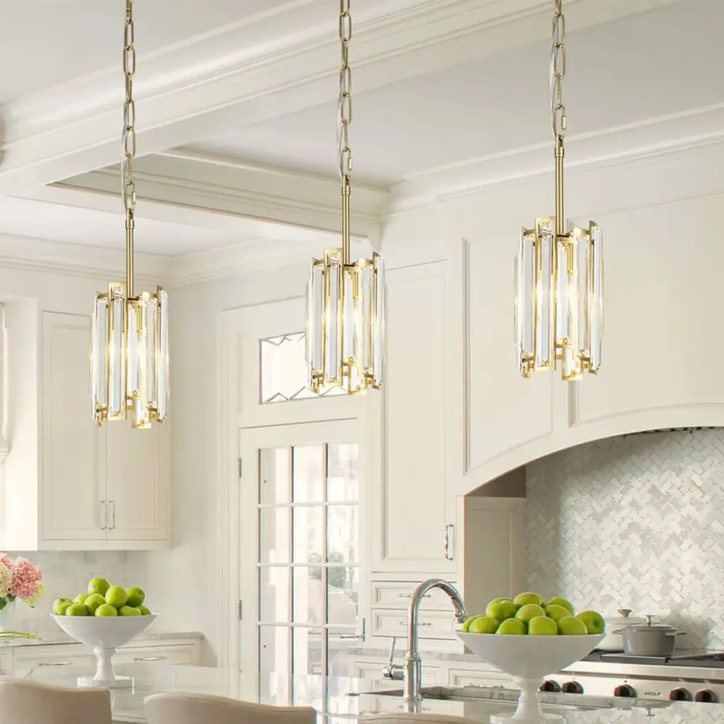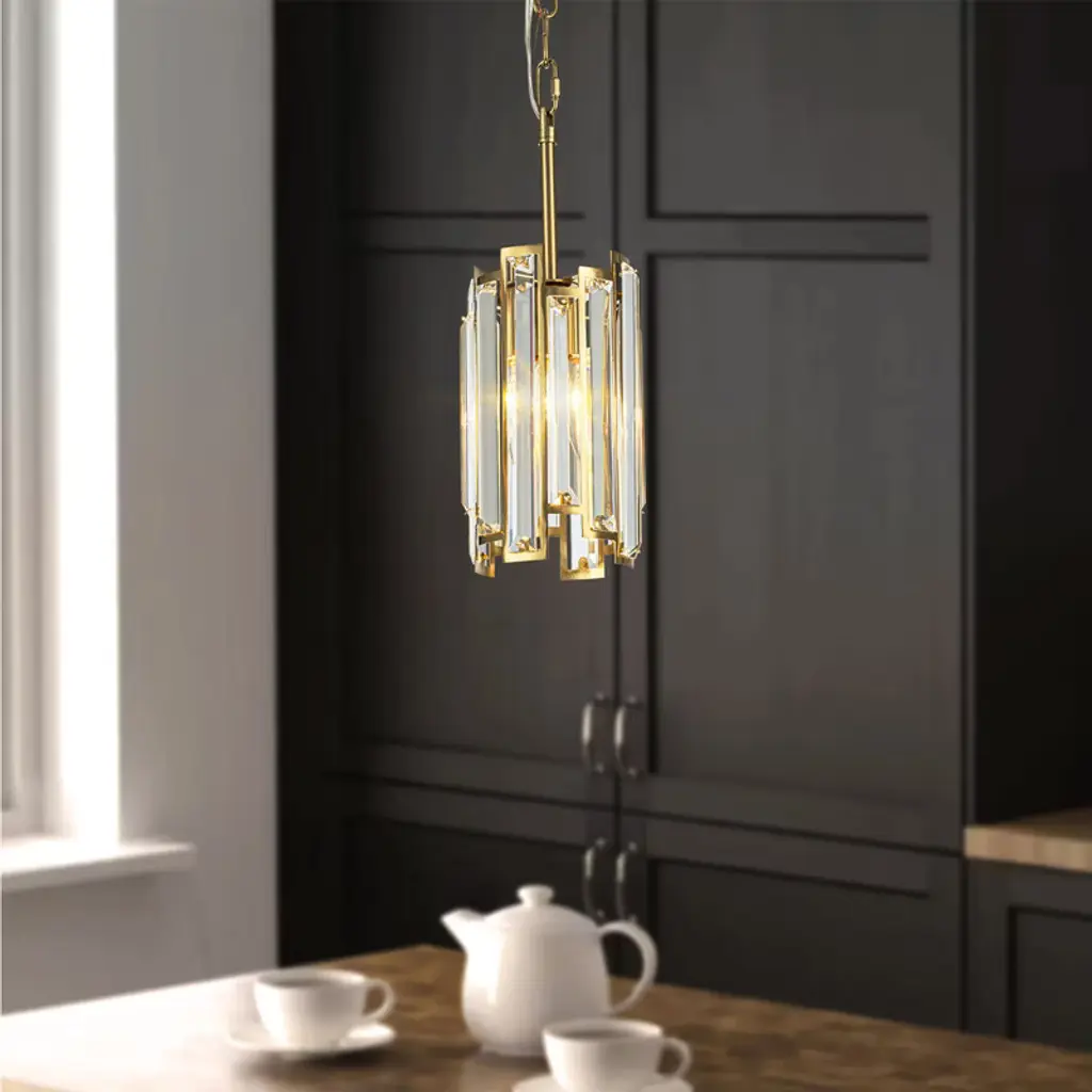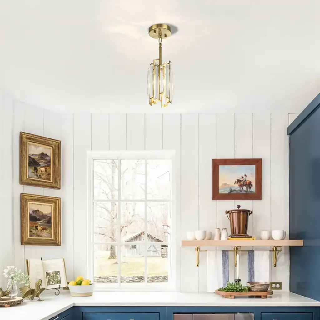 Add a dazzling accent to any space with this dimmable mini pendant, featuring a geometric open frame and cascading triangular crystal rods. Designed to deliver elegant prismatic illumination, the crystals refract light into shimmering patterns, creating a glamorous, upscale vibe. Its minimalist square silhouette and sleek lines complement contemporary, transitional, and glam interiors alike. Ideal for task or accent lighting, this compact fixture shines over kitchen islands, bedside tables, bar counters, or hallway corners. Easy to install and made with high-end materials, this pendant brings refined beauty and dimension to small spaces¡ªperfect for those who want a stylish touch without overwhelming the room.
