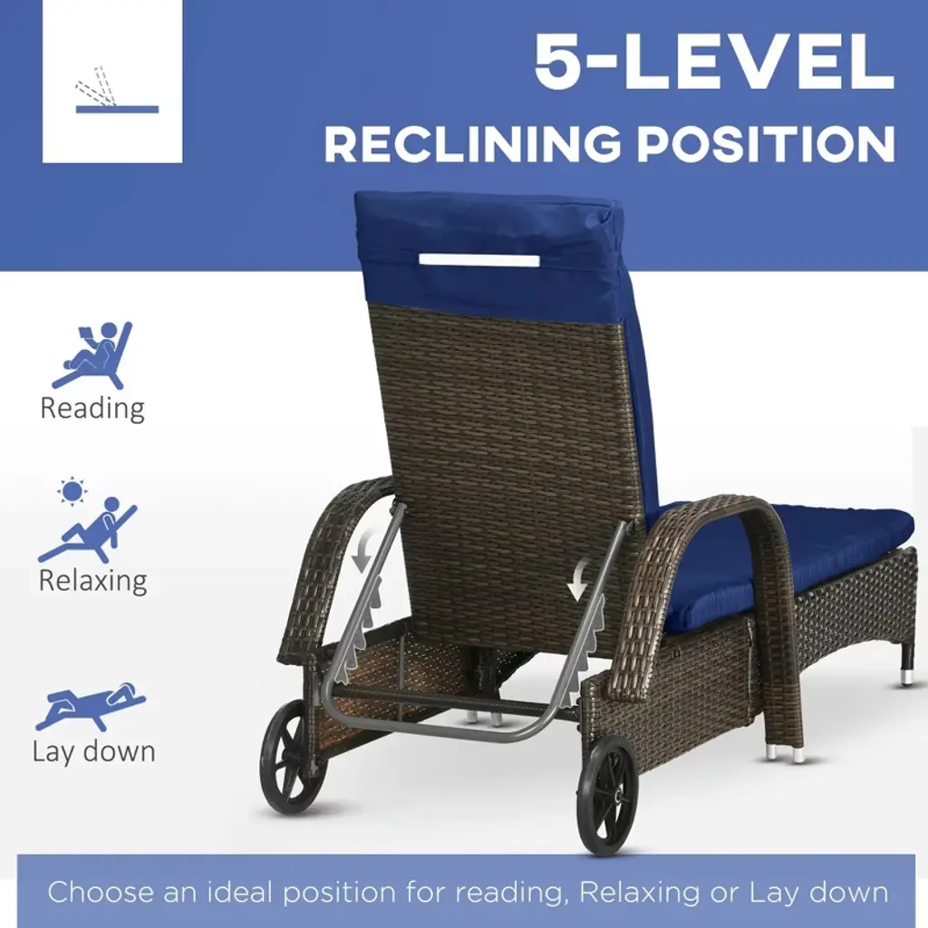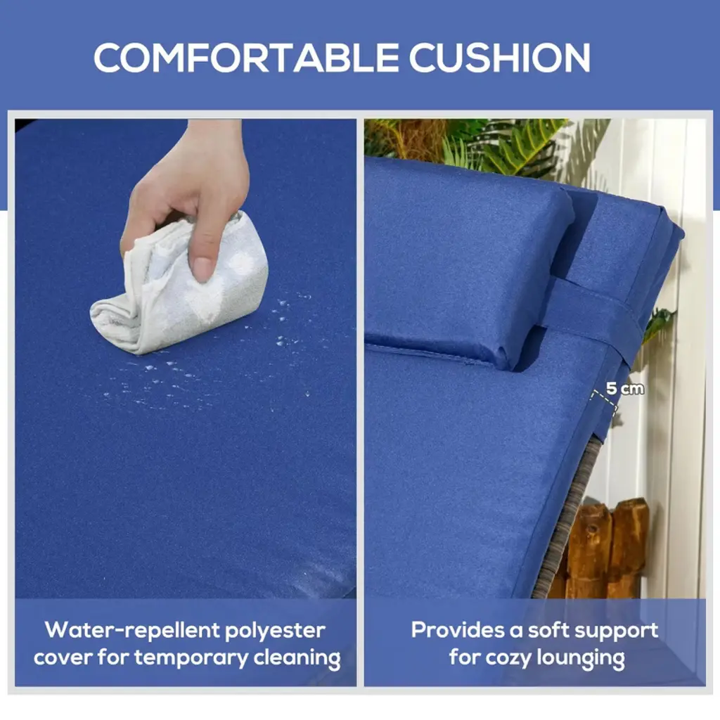 Resenkos Outdoor Furniture With Table, Cushion & Headrest, Comfyseating For Patiorelaxation, Dark Blue