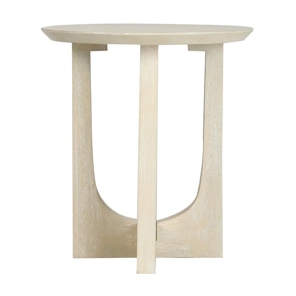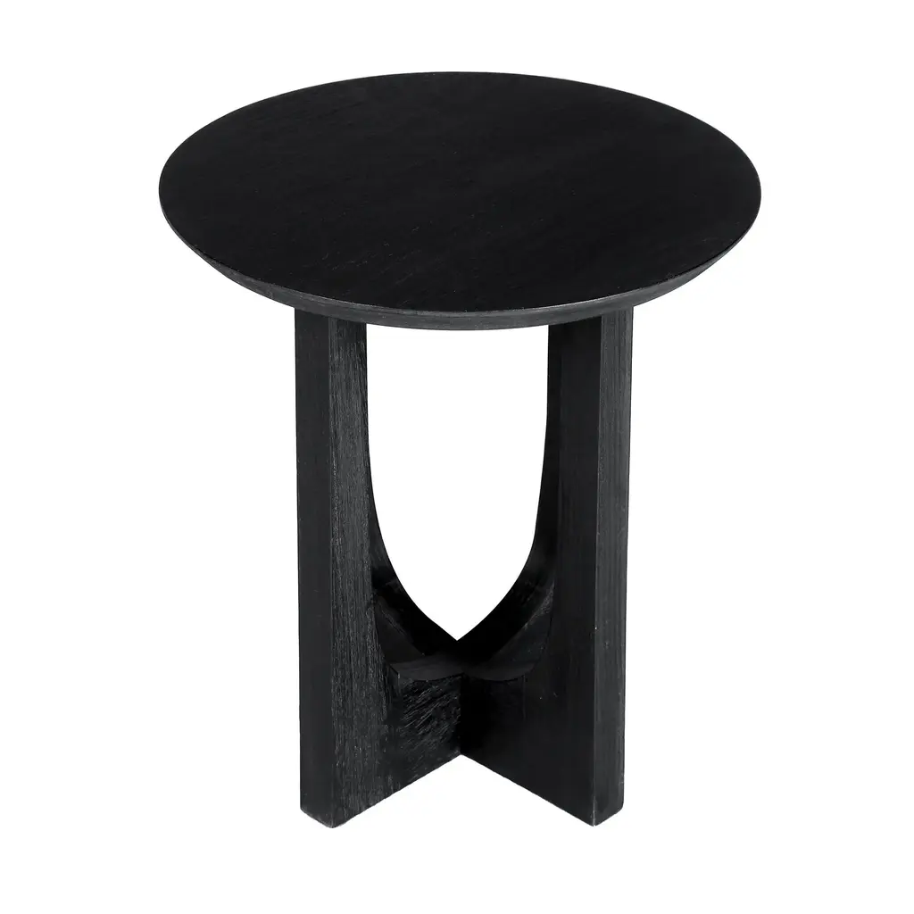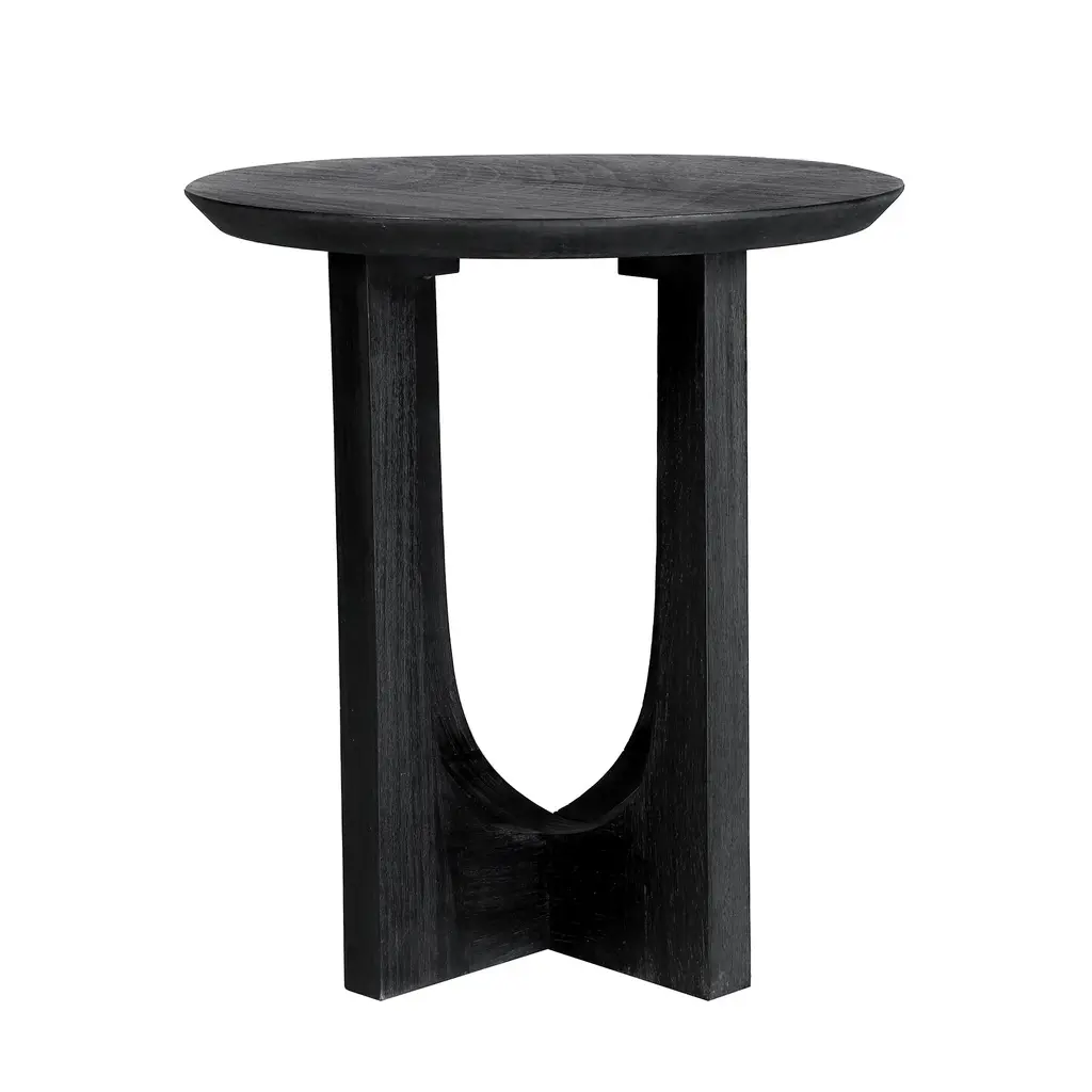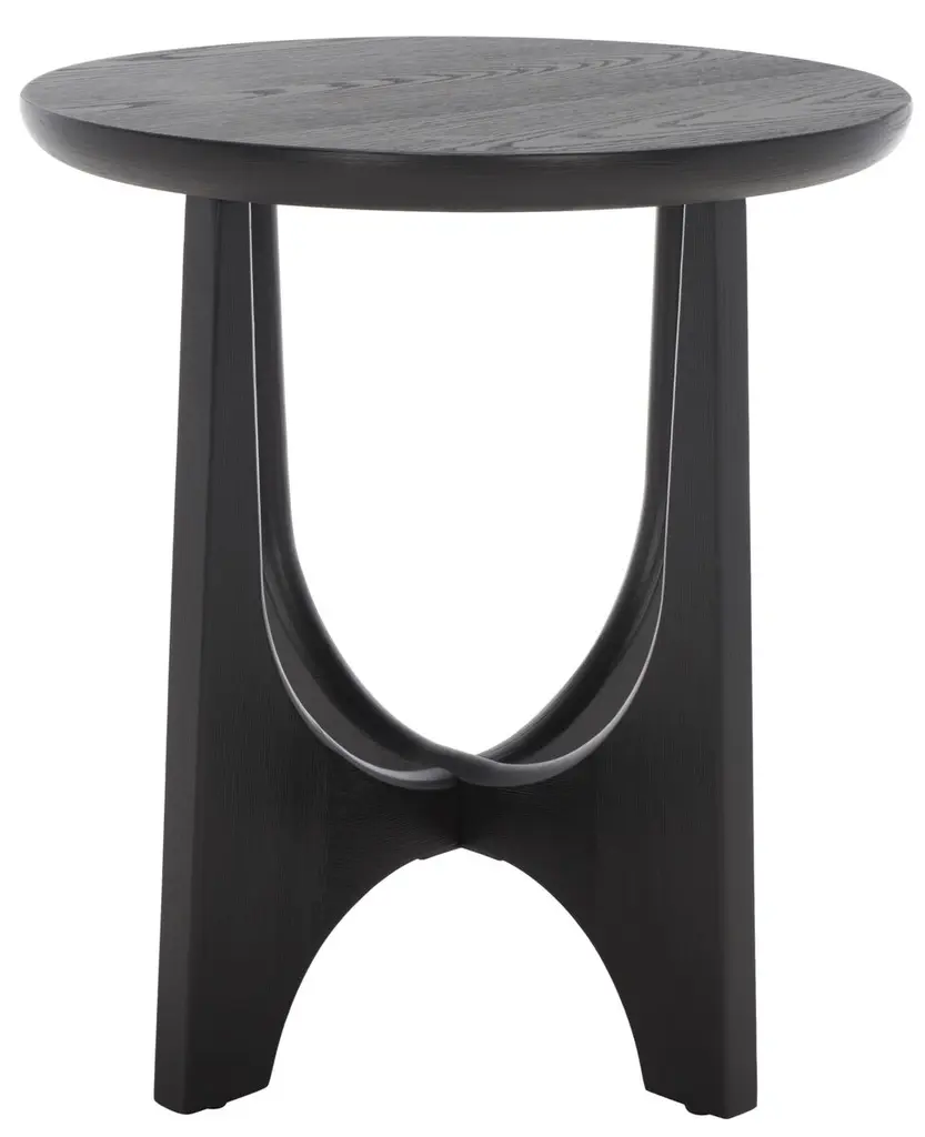 Crafted from solid, sustainable mango wood, the modern, reverse arch base gives this round side table a striking architectural silhouette. A wire brushed hand-finish adds a touch of luxurious organic texture. Enhance the impact of this curved, minimal side table with coordinating coffee and console tables from the reverse arch collection. Available in both matte black and beige finishes.