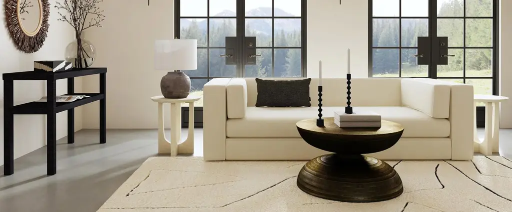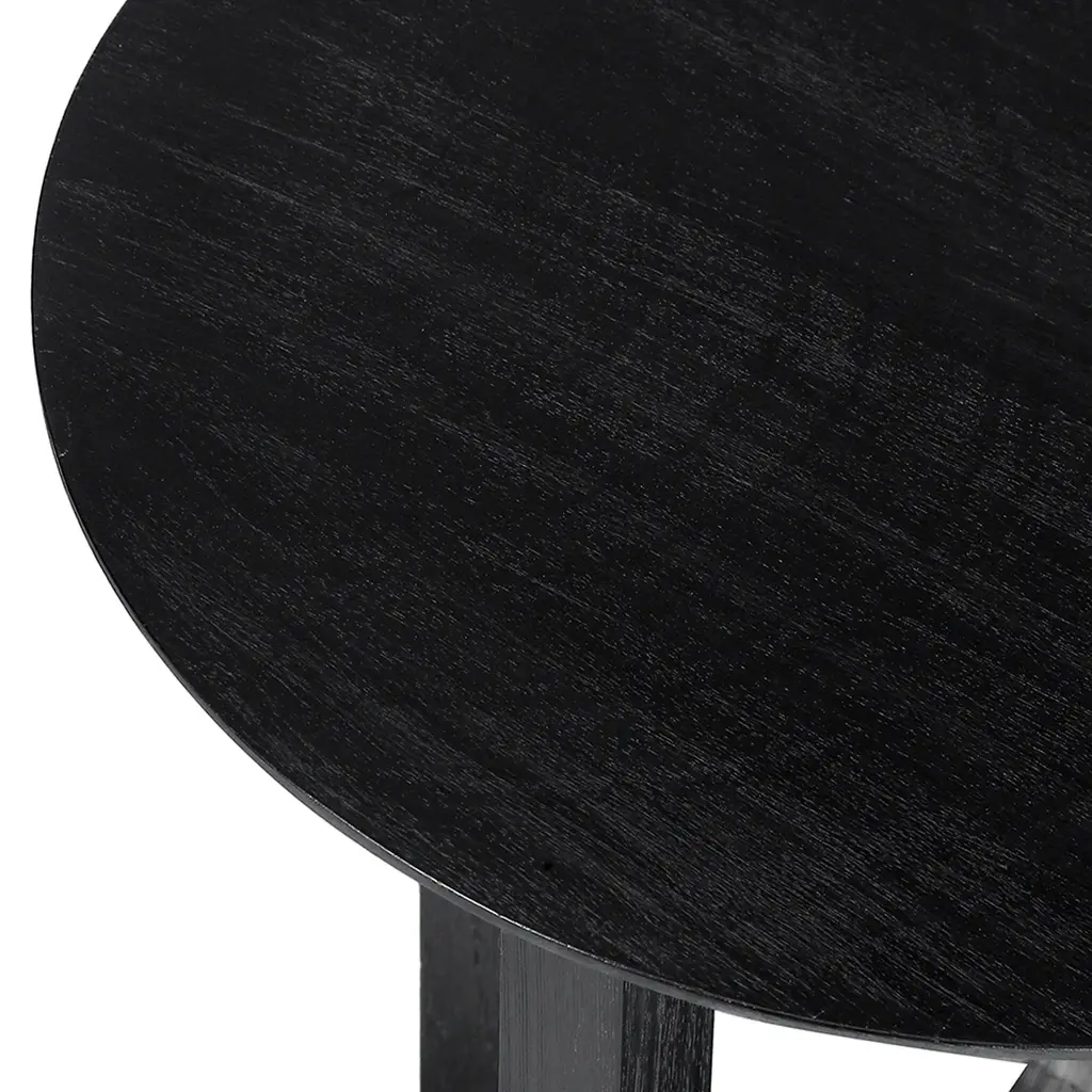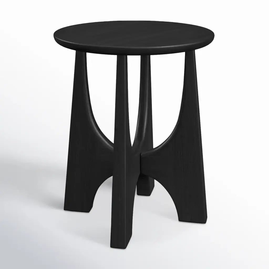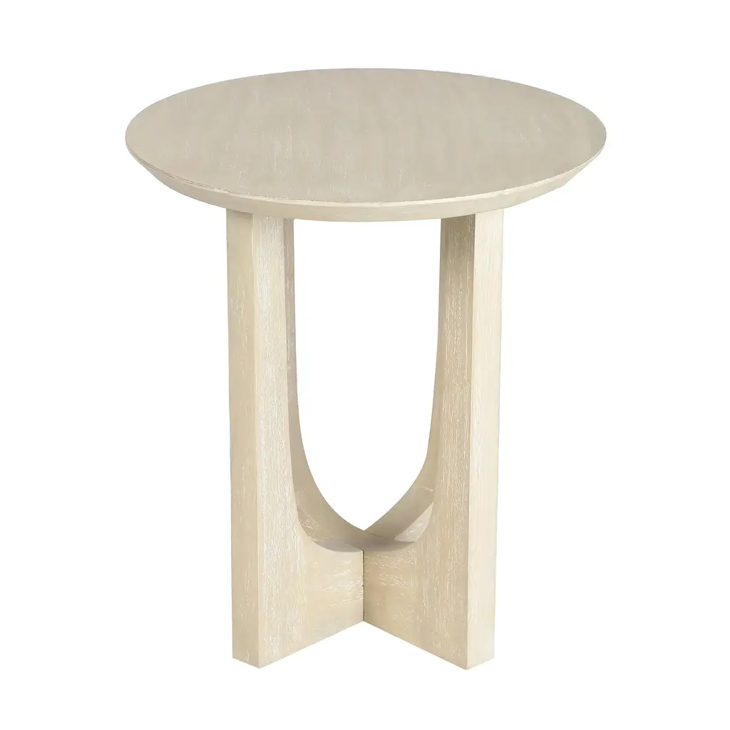 Crafted from solid, sustainable mango wood, the modern, reverse arch base gives this round side table a striking architectural silhouette. A wire brushed hand-finish adds a touch of luxurious organic texture. Enhance the impact of this curved, minimal side table with coordinating coffee and console tables from the reverse arch collection. Available in both matte black and beige finishes.