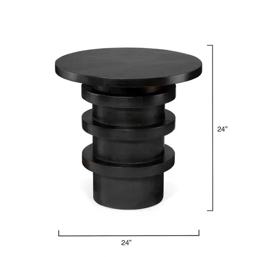 With architecturally inspired lines and industrial notes, the Revolve side table defies categorization. Hand-carved of mango wood by artisans this table features organic variations in finish and texture. Place this table next to a sofa, combine two or three in a seating area for versatile use or even use them as nightstands. Anywhere in your home, this side table is sure to be a favorite!