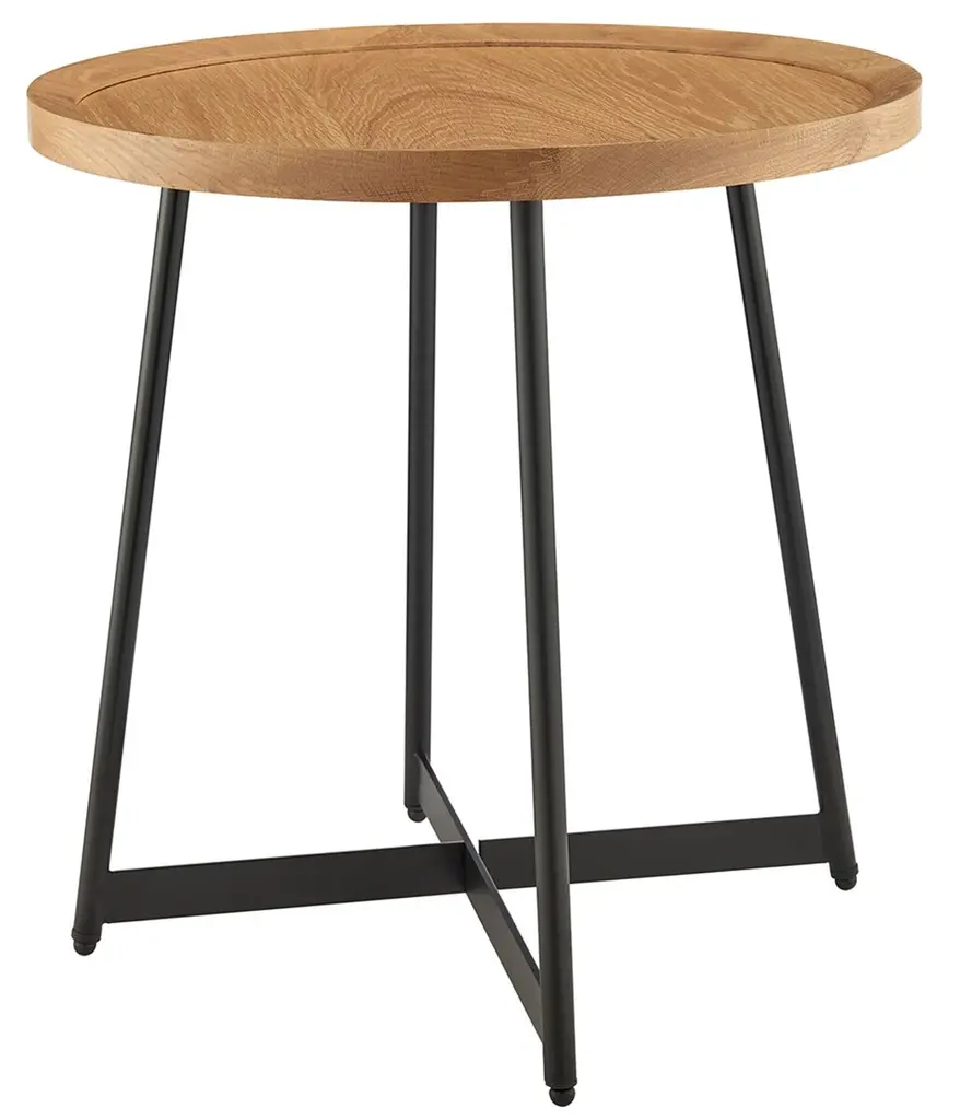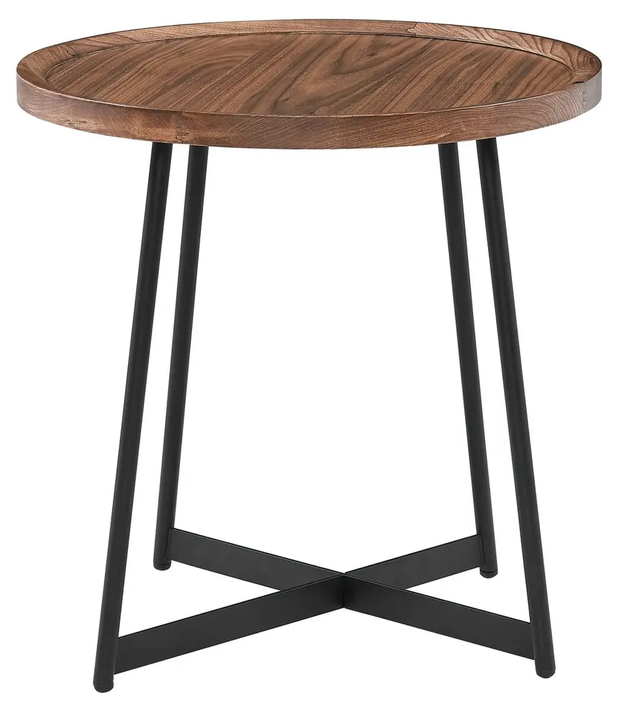 A round top with richly figured American walnut veneer rests on a minimalist black iron base, making this side table a welcome addition to traditional, rustic, and contemporary spaces alike.