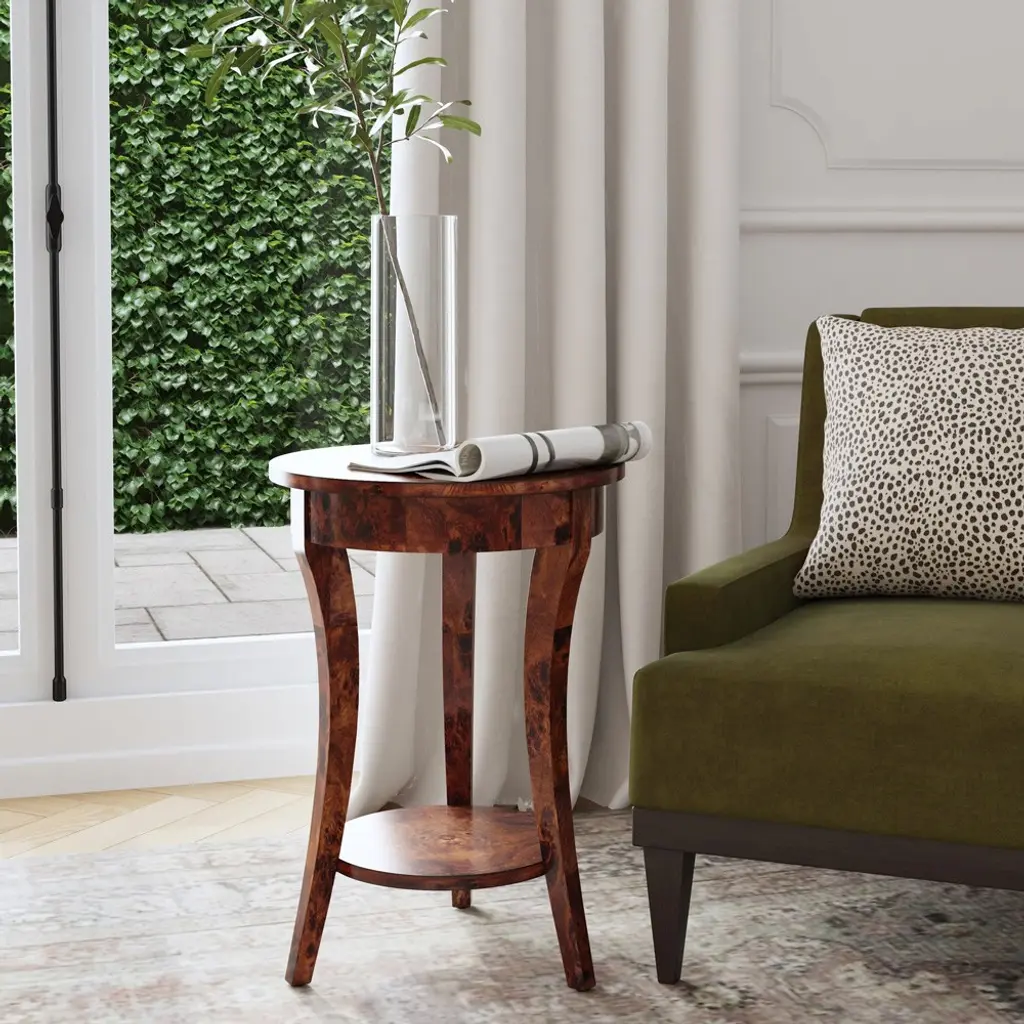 Rhett Modern Classic Brown Burl Round Side Table