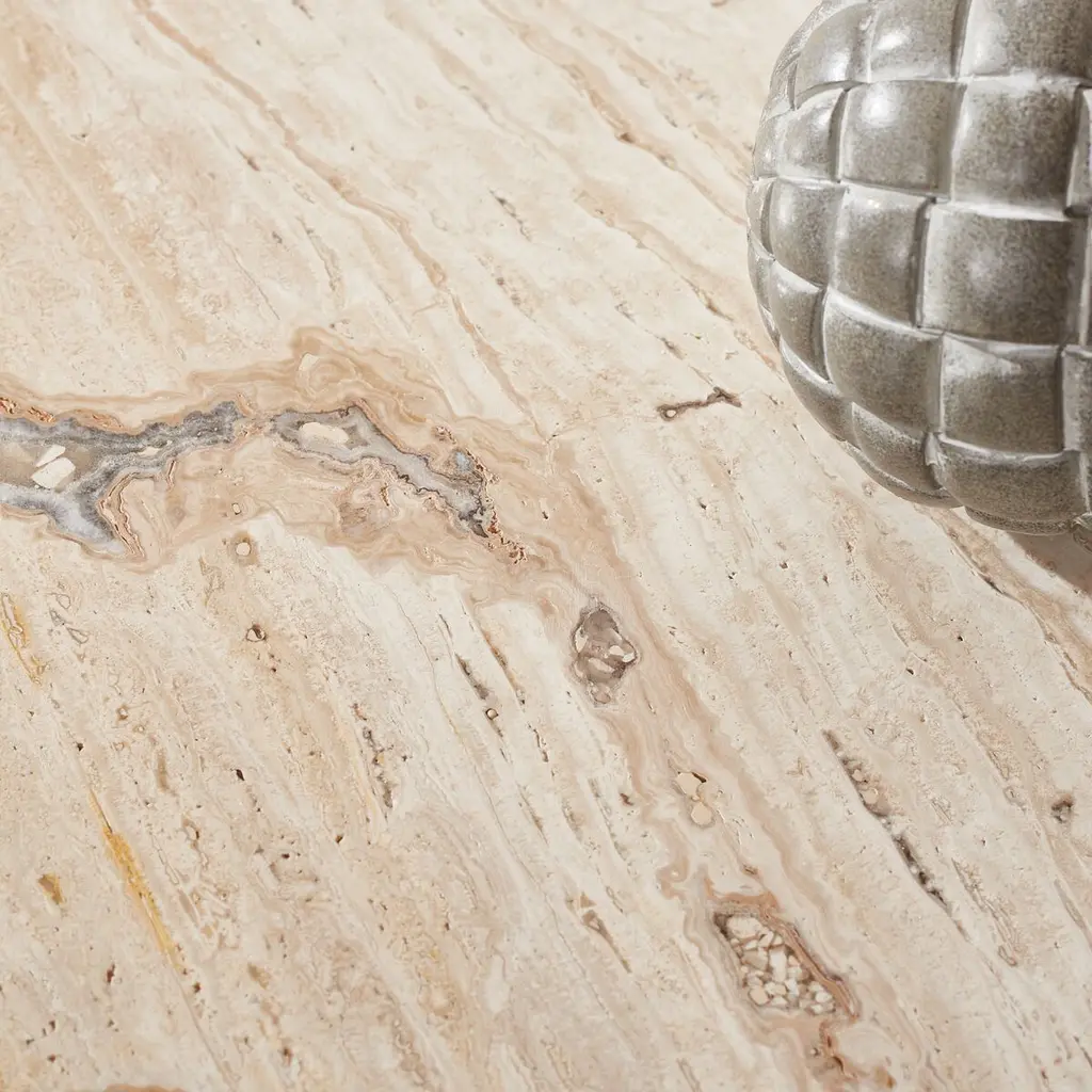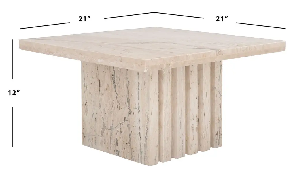 Upgrade your home with the architectural grace and charm of the square accent table. An alluring marble top sits upon a fluted base to add a sculptural and architectural detail to your home. Showcasing the eye-catching beauty of real travertine marble, this accent table elevates any corner with its organic veining and natural tones. The accent table is perfectly sized for cocktail hours or serves as the perfect backdrop to your favorite decor items.