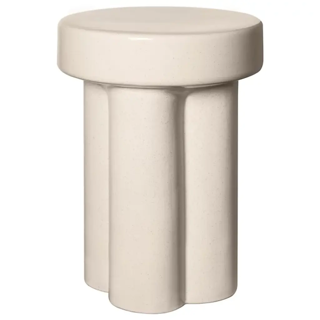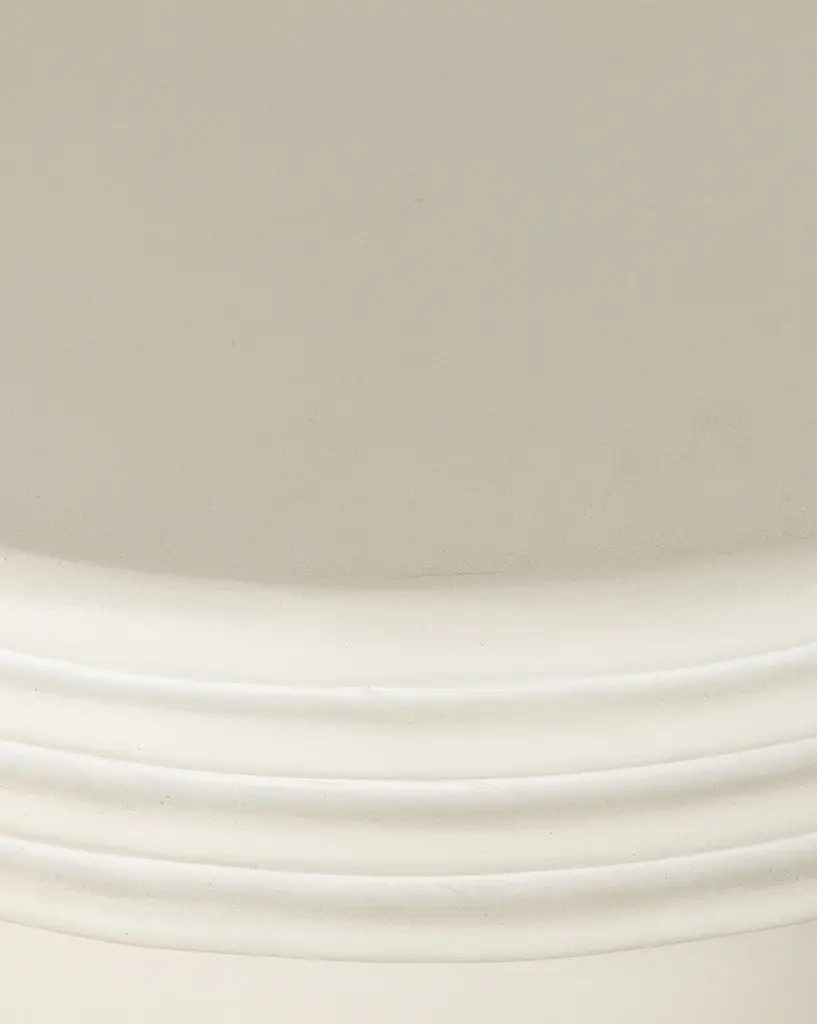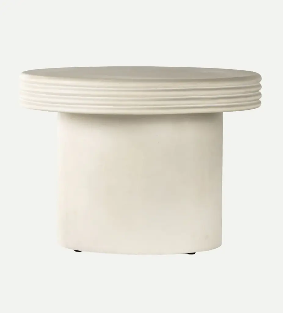 Sculptural and dramatic, the Riah End Table brings its simple structure and bold features to your styling, whether indoors or outdoors. Made from concrete in a white finish, the ribbed edging on the tabletop adds subtle dimension to the cylindrical base.
