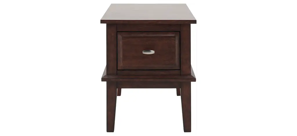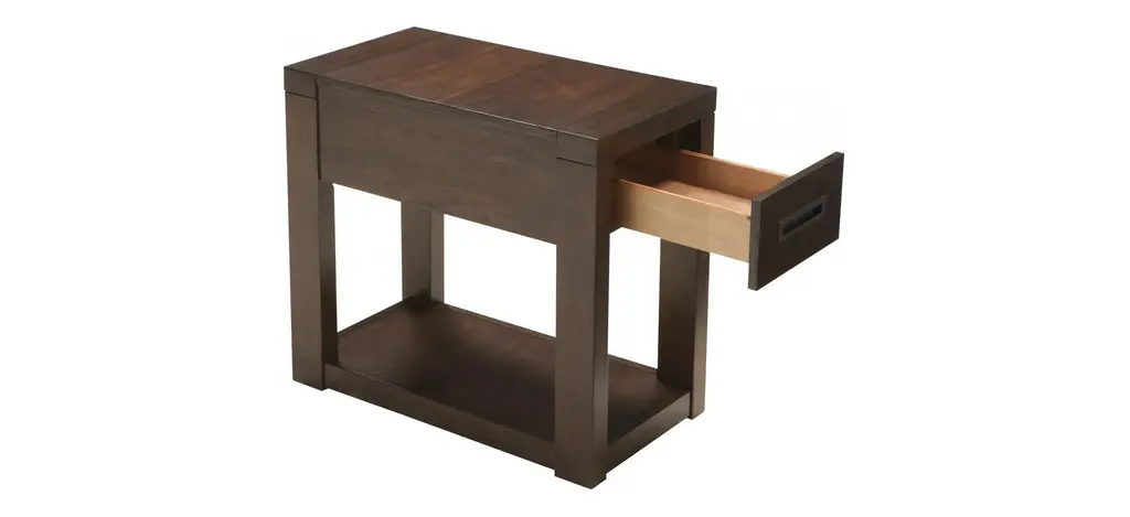 Convenient storage and contemporary style make this Riata chairside table a beautiful and practical addition for your living room. Its streamlined design features a finished drawer and a lower shelf, so you'll have plenty of room for remotes and books without sacrificing one bit of style!