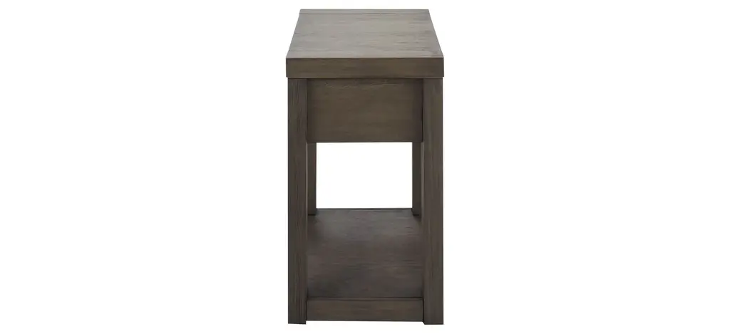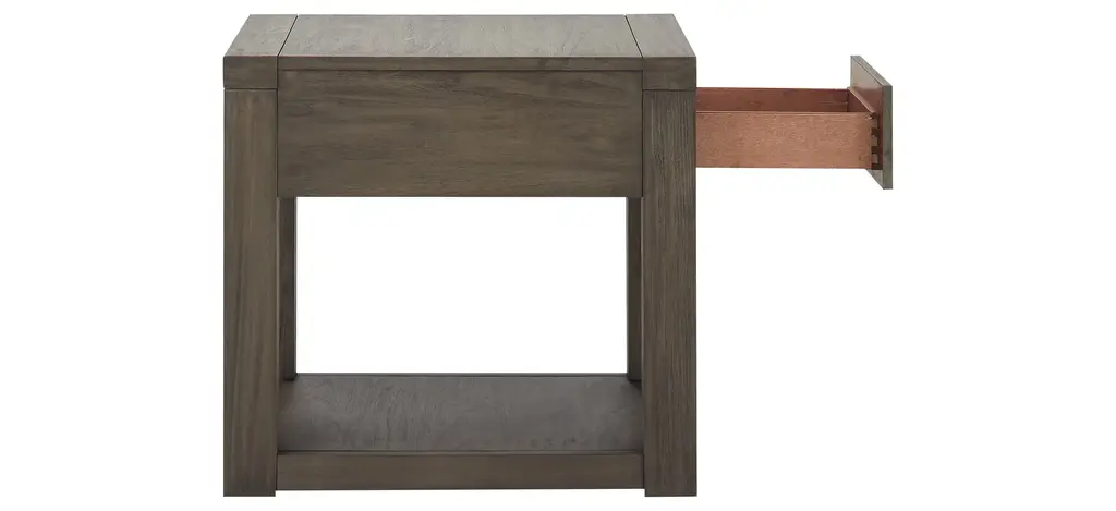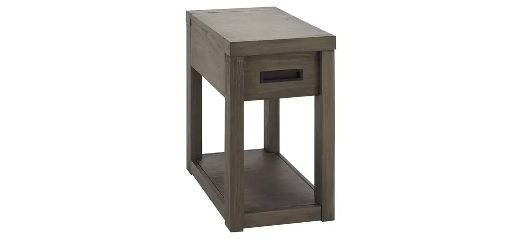 Add a dose of contemporary style to your living space with the Riata chairside table. The finish brings the poplar wood to life, and looks great in any decorating scheme. Ample storage and rolling casters offer convenience.
