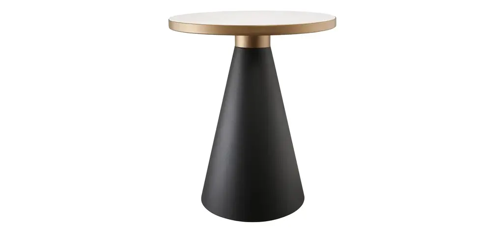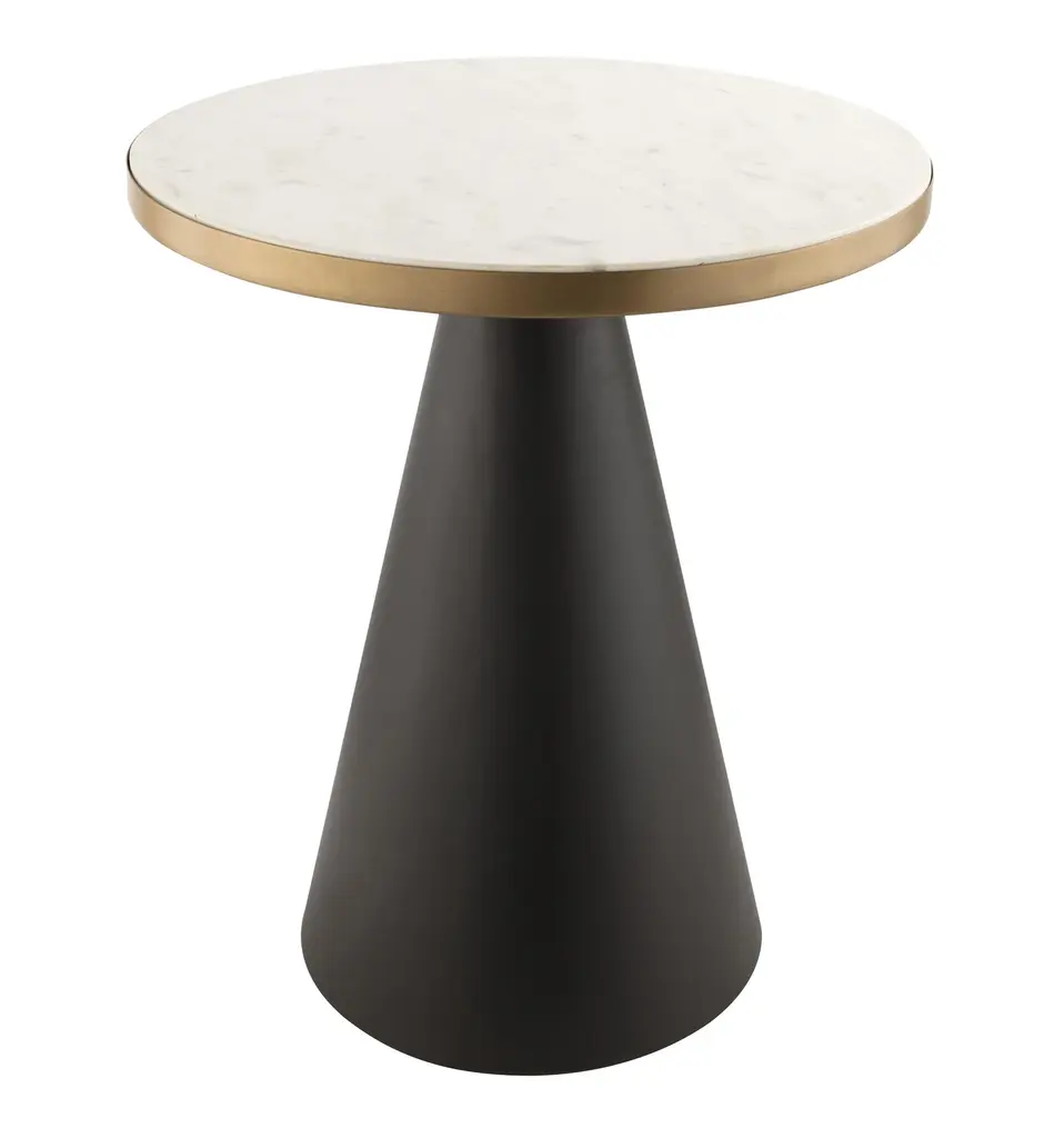 Brimming with refinement, the eye-catching design of the Richard Marble Side Table shows off an elevated white marble top elegantly bordered in gold and anchored to a black conical base. The Richard collection is sure to enhance any space its placed. As this is a handmade product, slight variations are to be expected and may result in small gaps between the marble and frame.