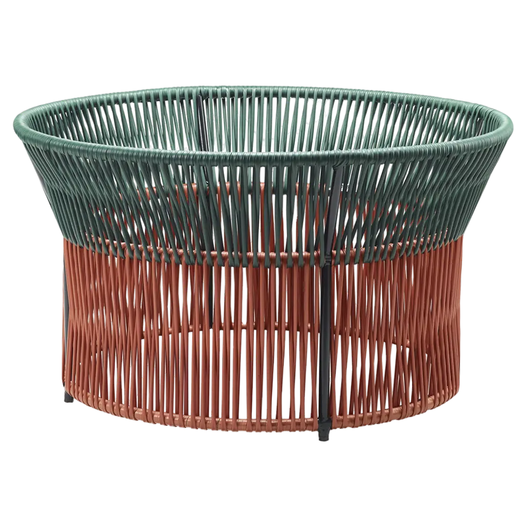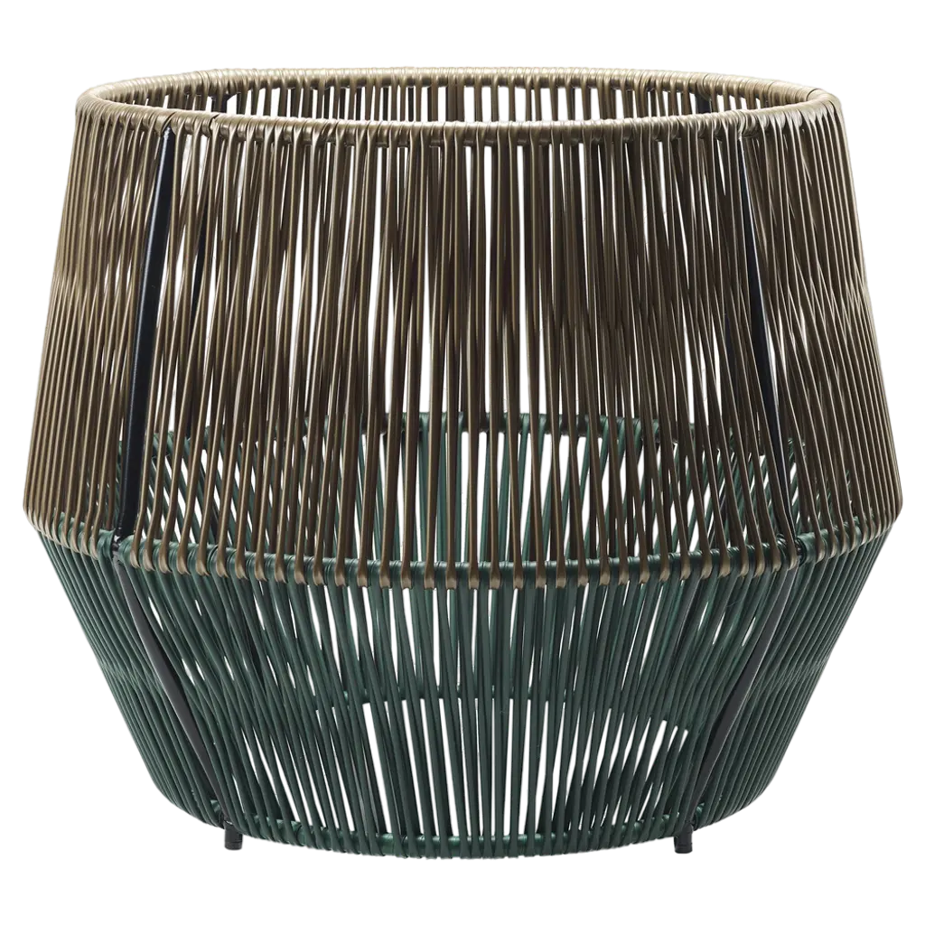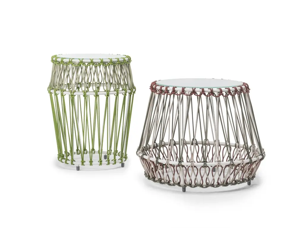 Ringo short end table by Kenneth Cobonpue.Materials: Polyethyelene, aluminum.Also available in other colors.Dimensions:Glass diameter 38cm x H 6mmTable diameter 57 cm x H 44 cm March to the beat of your own drum with Ringo. The lightness of the intricately stringed open weave adds a subtle groove to any space.Designer's BiographyKenneth Cobonpue is a multi-awarded furniture designer and manufacturer from Cebu, Philippines. His passage to design began in 1987, studying Industrial Design at the Pratt Institute in New York. While completing his studies, he apprenticed for a leather and wood workshop near Florence, Italy. He went on to study Furniture Marketing and Production at the Export-Akademie Baden-Württemberg in Reutlingen, Germany, under a private and state scholarship program, and subsequently worked in Bielefeld and Munich.Kenneth returned home to Cebu in 1996 to manage Interior Crafts of the Islands, Inc., a furniture design and manufacturing company founded by his mother Betty Cobonpue in 1972. Discovering that modern design could have a new face using natural fibers and materials, Kenneth created pieces of functional art, offering an alternative to the Western definition of modern design. Today, the Kennethcobonpue brand has become known globally for its unique designs and extensive roster of clientele, including Hollywood celebrities and members of royalty.With his masterful way of integrating nature, traditional craft and innovative technologies, designer and creative director Kenneth Cobonpue has earned international awards and recognition for his creative, organic, and expressive pieces. Working closely with some of the world’s leading designers, from household names to emerging talents, Kenneth has been pushing the envelope for design in the Philippines and sharing his vision to a global audience. Awards to his credit include five Japan Good Design Awards, the grand prize at Singapore International Design Competition, the Design for Asia Award of Hong Kong, the American Society of Interior Design Top Pick selection and the French Coup de Coeur award. Several of his designs were selected for several editions of the International Design Yearbook published in London and New York. Phaidon’s book entitled “& FORK” underscores Kenneth’s position as a leader of a new movement incorporating new technologies with crafts. In 2007, TIME magazine called him “rattan’s first virtuoso”. Kenneth was named the Designer of the Year in the first edition of Maison et Objet Asia held in March 2014 in Singapore.Kenneth reveals new work each year in the design shows from Milan to New York, and he speaks regularly about Southeast Asian design all over the world. He has also appeared in European television and in countless international magazines and newspapers around the world. Various Cobonpue designs have also appeared in full-length feature films and television, such as Oceans 13 and CSI.