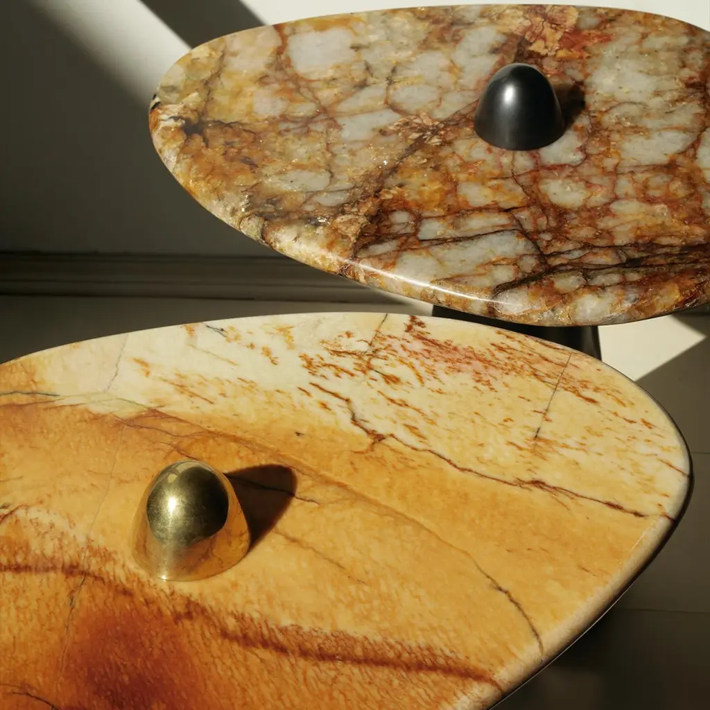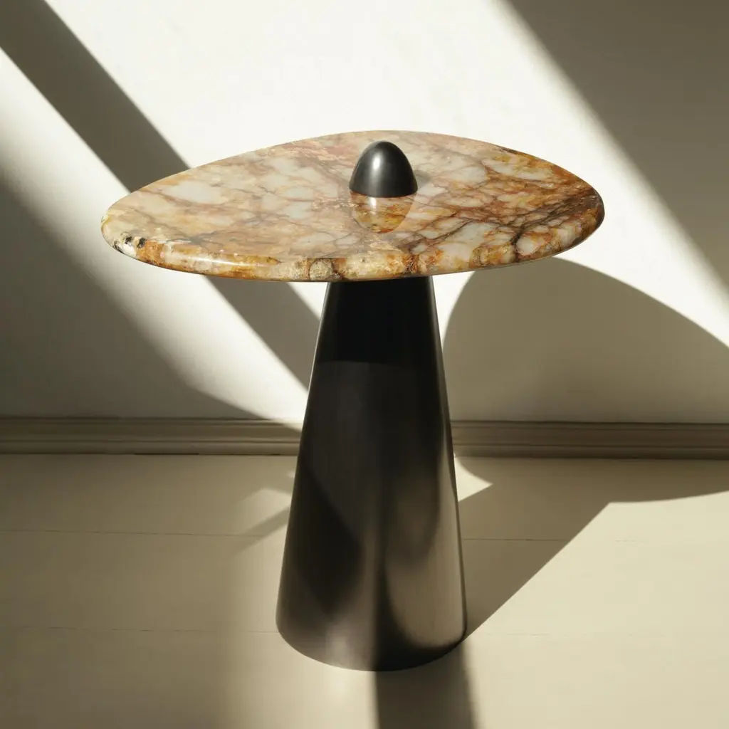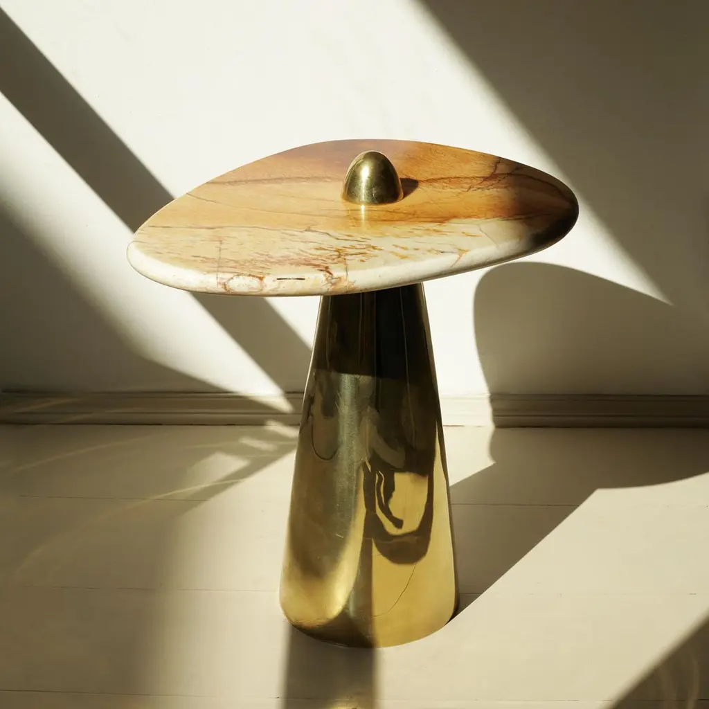 "Rino" Side Table In Cast Brass And Patagônia Stone By Estudio Orth