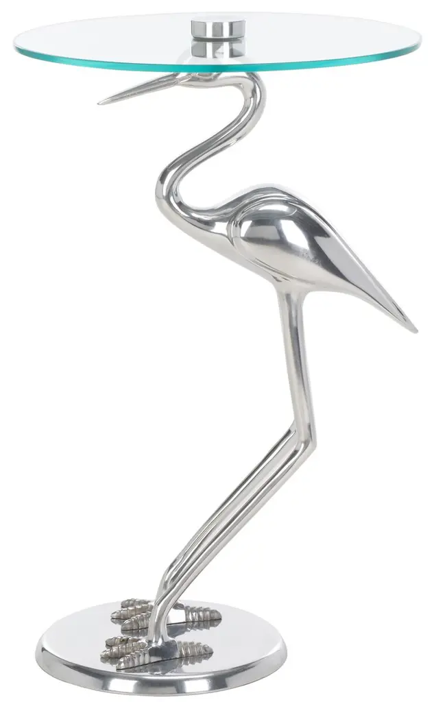 Beautifully designed after the Japanese symbol of happiness and good fortune, this Rivenae Crane Accent Table is an artisanal masterpiece. Its captivating finish highlights Rivenae's sculptural silhouette, etched details, and clear glass top, giving your decor enchanting, organic elegance.