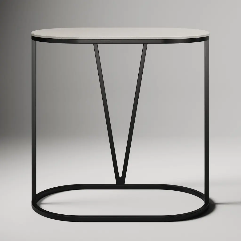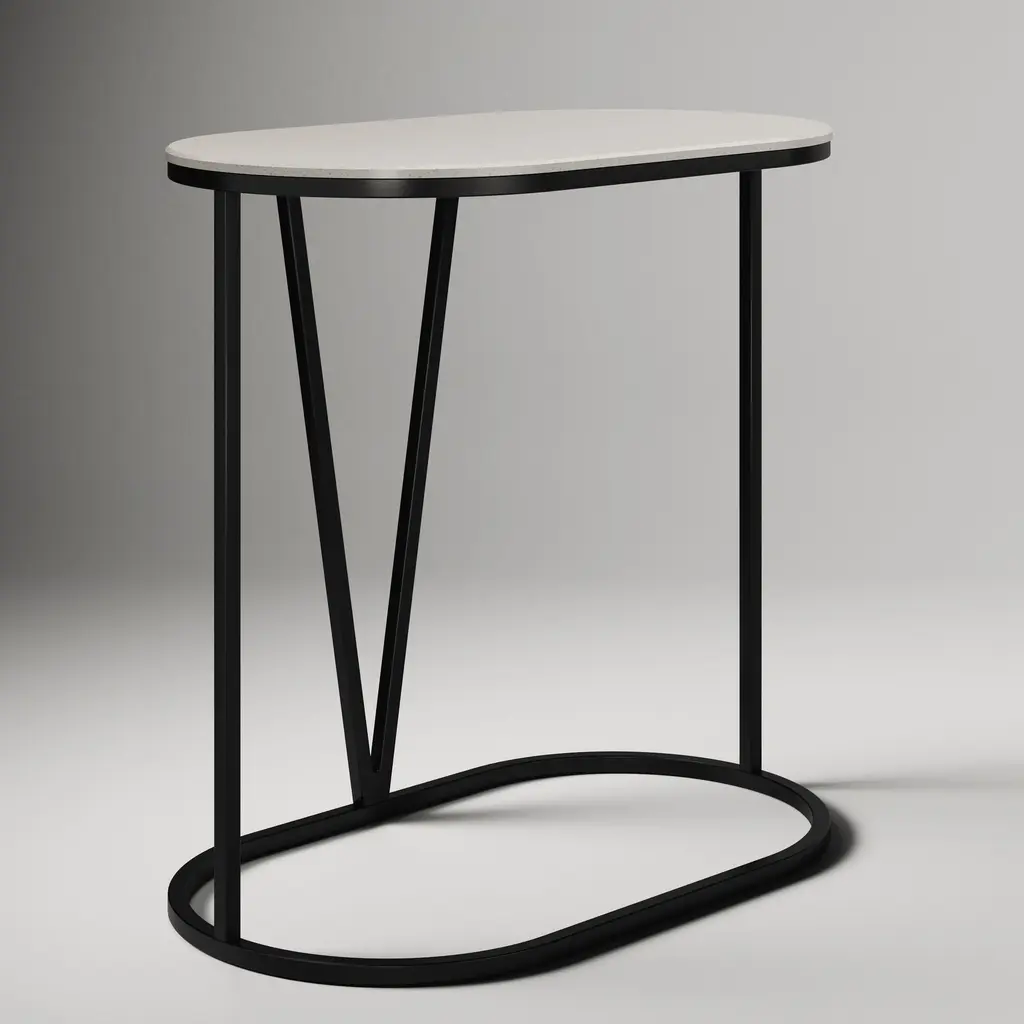 The lofty metal base pops against the quartz marble top. Space-saving base tucks under sofas or beds. Great for co-working spaces, hotel lobbies and waiting areas. Contract Grade for unmatched durability.
