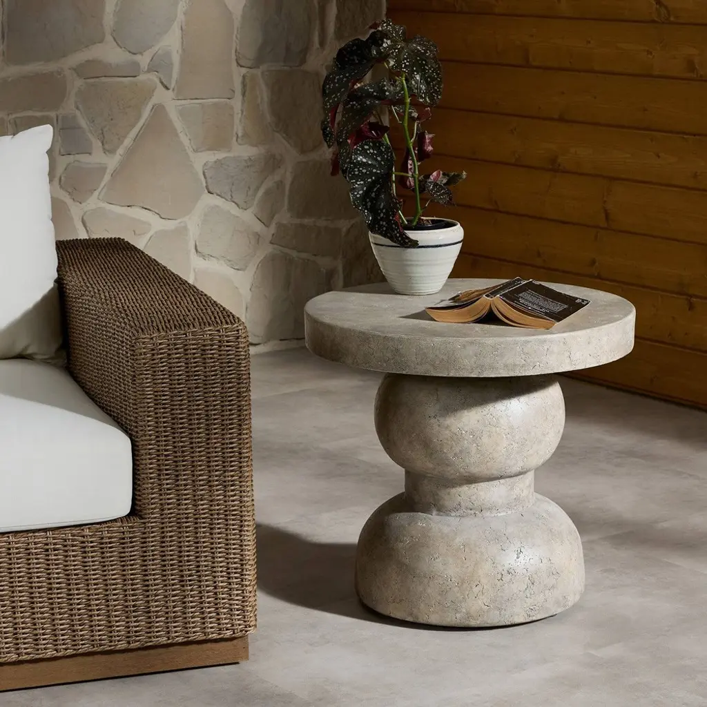A design collaboration by Amber Lewis and Four Hands. This end table turns stacked, round shapes into a sculptural moment, crafted entirely from cast concrete.
