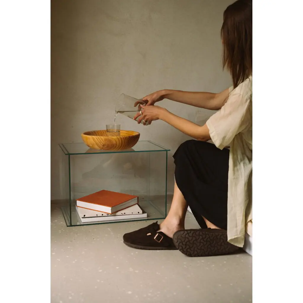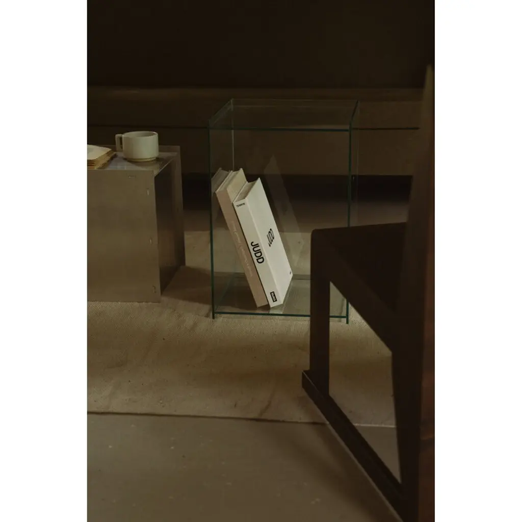 Frama's Rivet Box table is a strikingly sculptural piece that fits beautifully in any room. Versatile in design, it works equally well as a side table or storage box and can be positioned either vertically or horizontally. This glass Rivet Box table continues the stripped-down design language of Jonas Trampedach's Rivet collection of aluminum furniture, combining sleek geometric shapes with durable materials that evoke an industrial feel. Made from tempered safety glass, the glass Rivet Box table has an exceptionally light, minimalist look and a durable structure that stands up to everyday bumps.