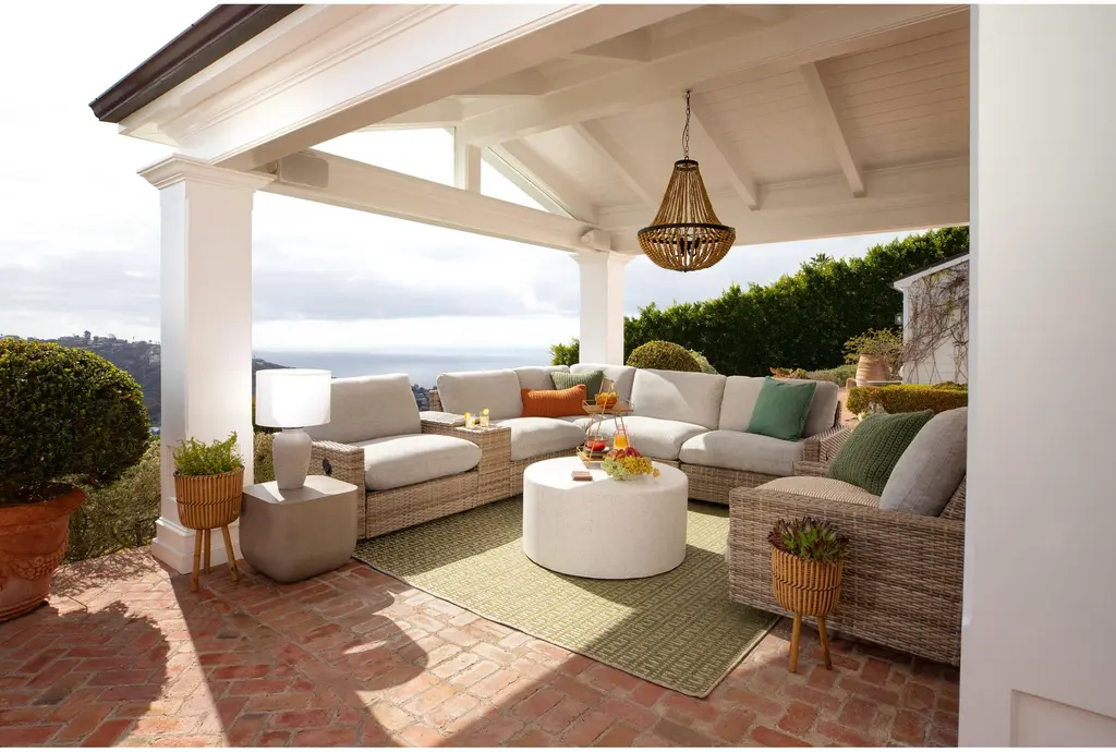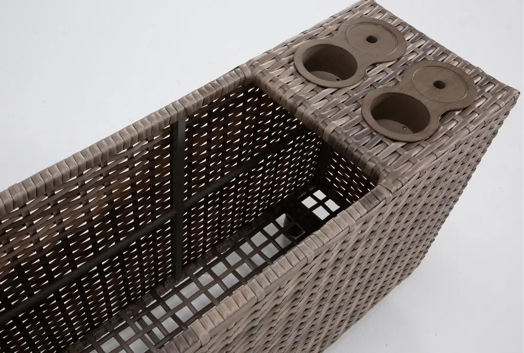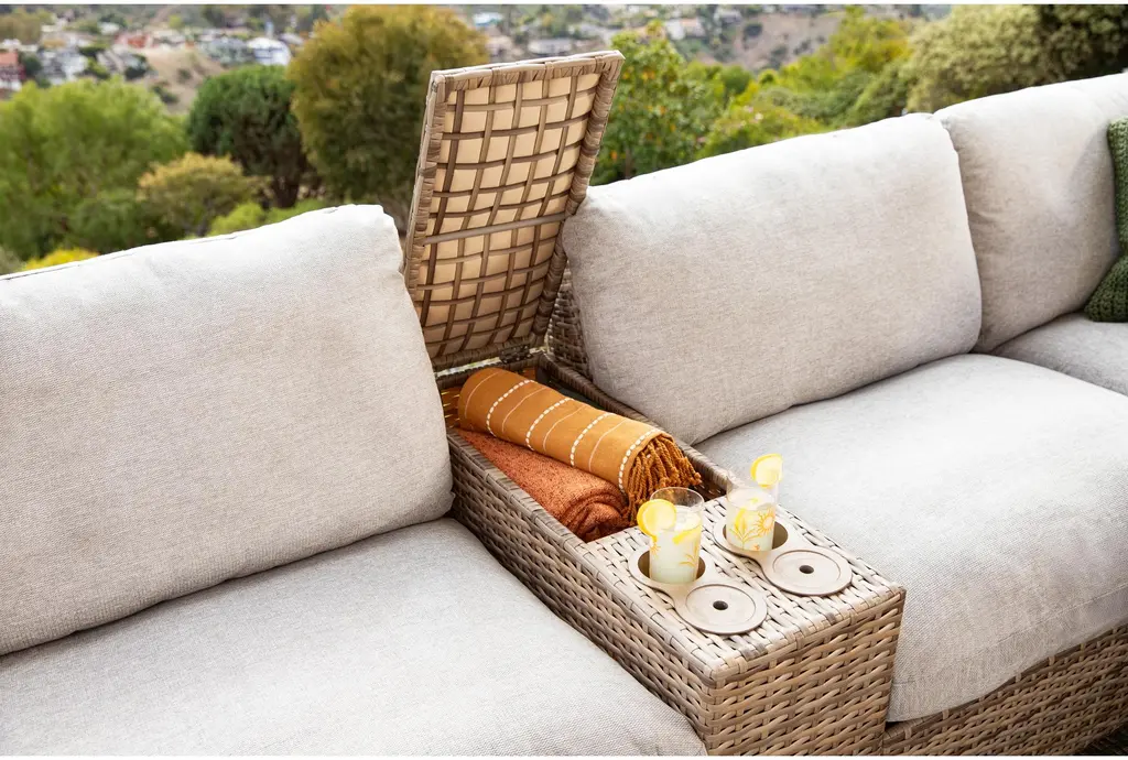 Riviera Natural Beige Wicker Outdoor Sectional Console | Rectangle | Rust Resistant | Mildew Resistant | Uv Resistant | Weather Resistant