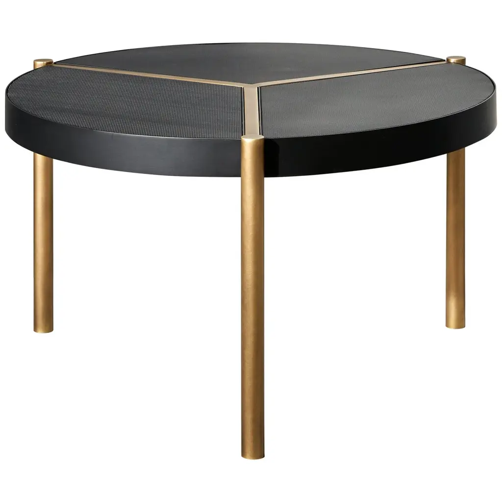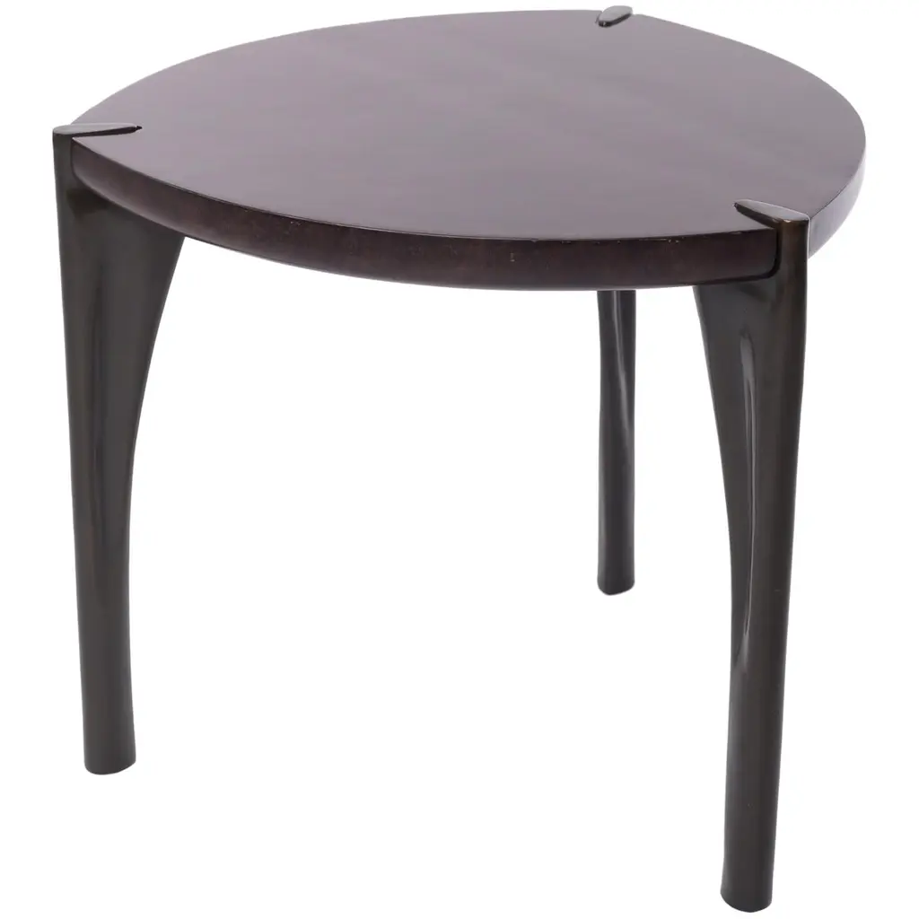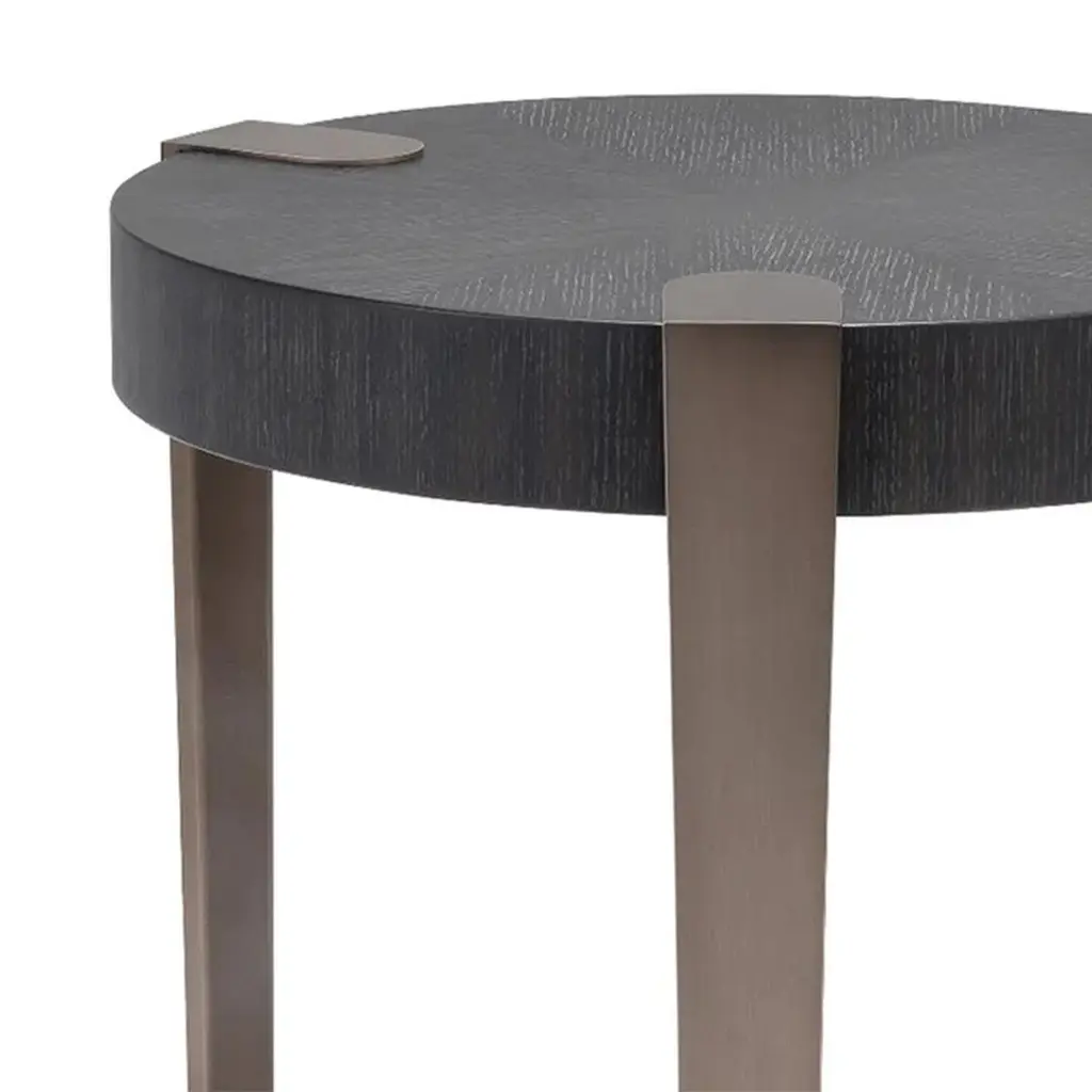 Side Table Robald with top in wood in grey oak veneer with 3 feet in steel in antique bronze finish.
