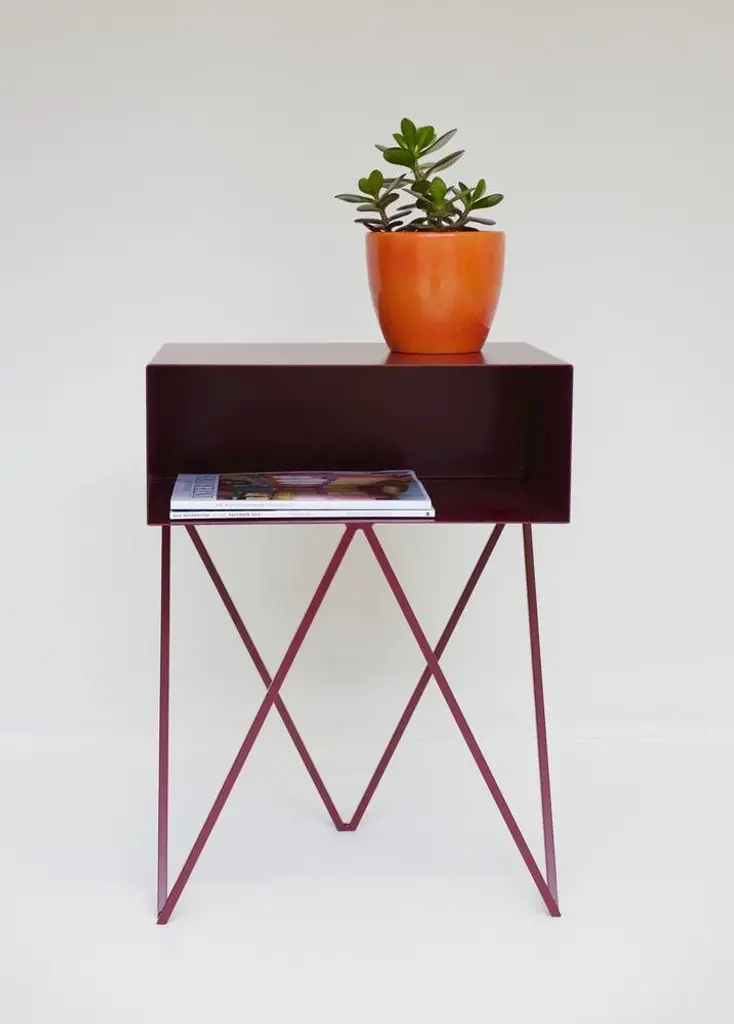 The Robot side table features an open shelf (H 17 cm) on zig-zag legs. A minimal design made in solid steel, powder coated in red. The clean lines look great against period details as well as in modern spaces. Perfect as a bedside table. All &New products are manufactured in Britain in small batches. They have plenty of character as every weld is different. The result is a collection of furniture that celebrates those little imperfections that make objects beautiful. Labeled by Maker,Labeled by Maker