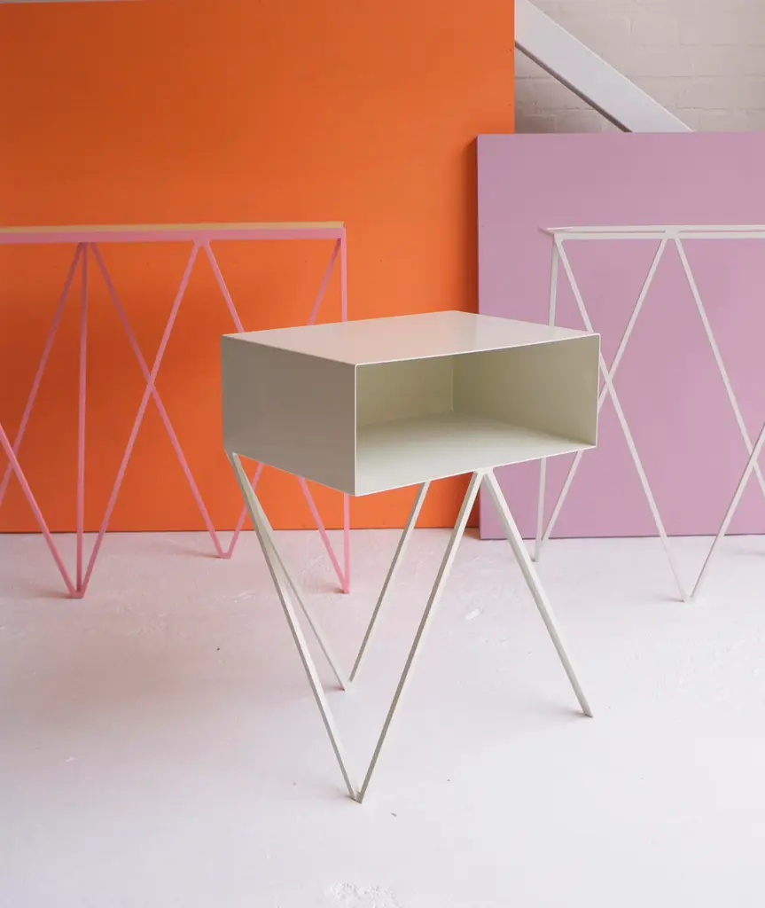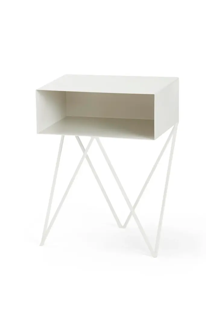 The Robot side table features an open shelf (H 17 cm) on zig-zag legs. A minimal design made in solid steel, powder coated in paper white. The clean lines look great against period details as well as in modern spaces. Perfect as a bedside table. All &New products are manufactured in Britain in small batches. They have plenty of character as every weld is different. The result is a collection of furniture that celebrates those little imperfections that make objects beautiful. Labeled by Maker,Labeled by Maker