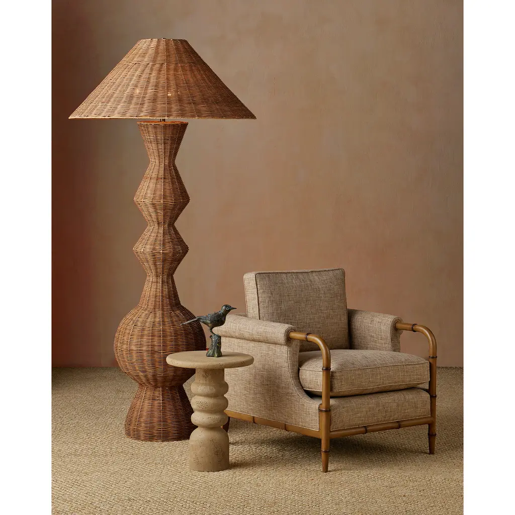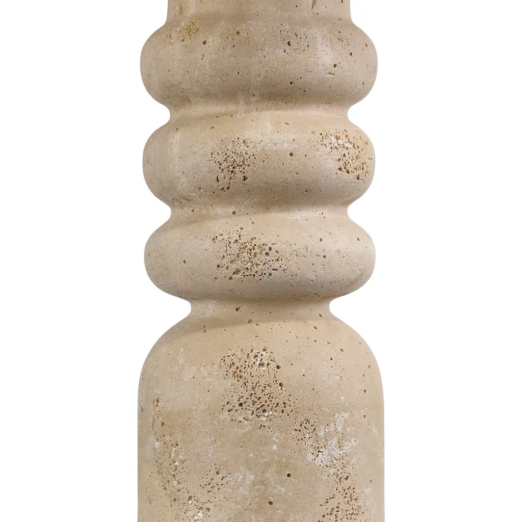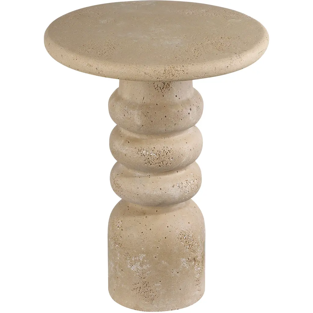 Blending timeless elegance with modern craftsmanship, the Rocco Accent Table is made of faux travertine, a carefully crafted blend of stone powder and composite that is expertly finished to mimic the warm, natural beauty of travertine. The table features a gracefully turned pedestal that supports a smooth, round top. With its refined texture and versatile tan hue, the Rollins is an ideal choice for both classic and contemporary interiors.