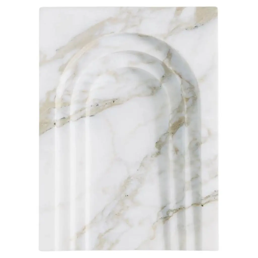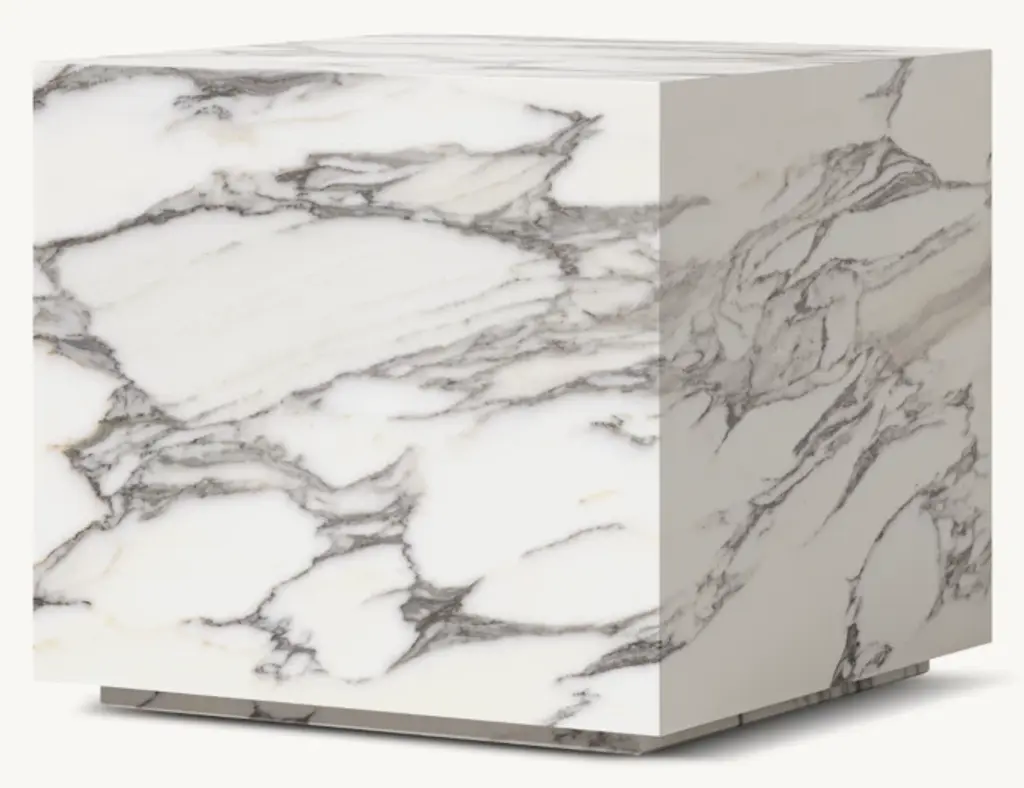 The elemental shape of the Rocco table showcases the beauty of natural stone, rich with the variable color tones and vein patterning that make each piece unique. A recessed plinth base casts a shadow below the sculptural form, lending a floating effect. SHOP THE ENTIRE COLLECTION