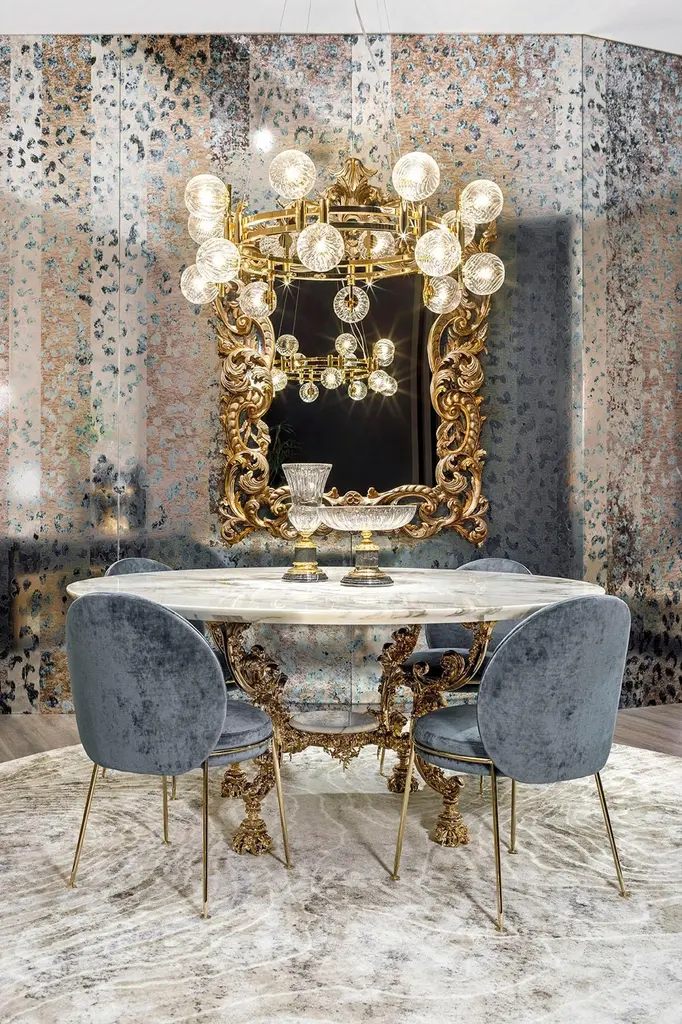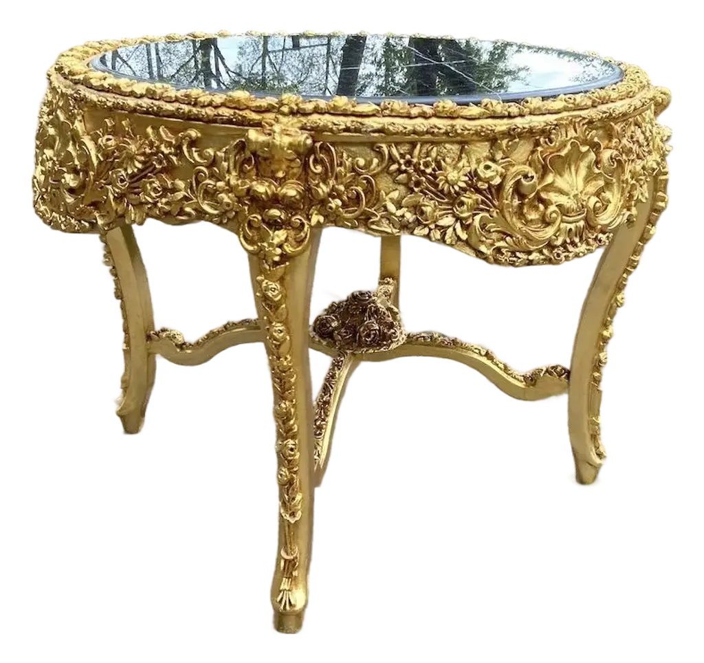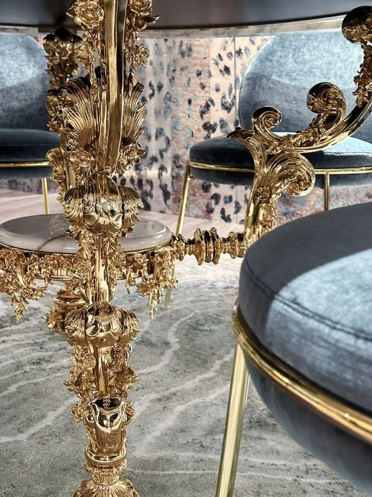Rococo Style Table Bronze Legs Wax Casting Technique Marble Top Calacatta Gold