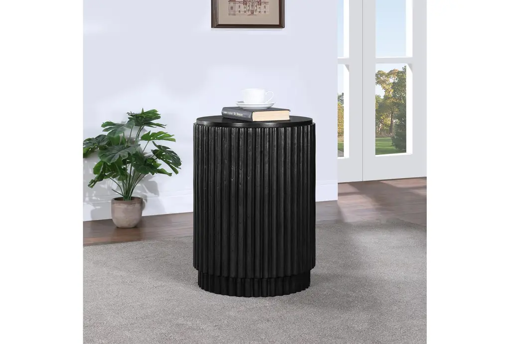 Rodin Modern Black Wood 18" Round Fluted Drum End Table