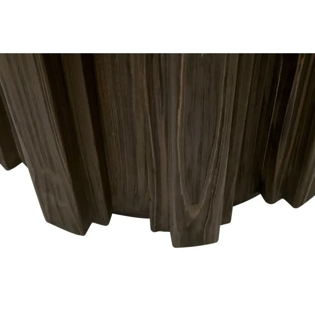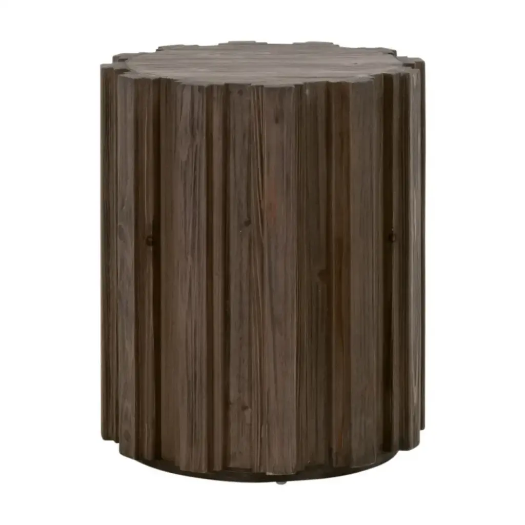 Renovate your living space with the Roma Accent Table by Essentials For Living. This charming little table will be the perfect accent piece within your collection. Crafted with precision from reclaimed pine wood, this transitional-style table features a timeless drift brown finish that adds warmth to any room. Its round shape, adorned with decorative wood fluting, exudes sophistication, while the plinth base ensures stability. Standing at 20.75†high and measuring 17†round, this compact table is ideal for small spaces and apartment life. With its eco-friendly materials and classic look, this accent table is sure to be a functional and stable piece for years to come.
