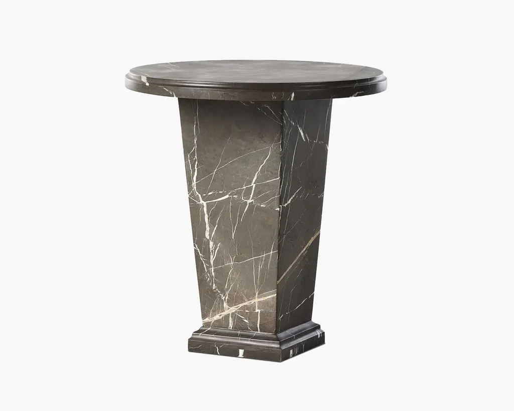 Inspired by Roman columns, a versatile end table of grey Italian marble works a sophisticated touch into any room. Dimensions: 24" W x 22" D x 24" H, 86 lbs. Shipping box: 30" W x 28" D x 32" H, 140 lbs. Receives White Glove delivery.