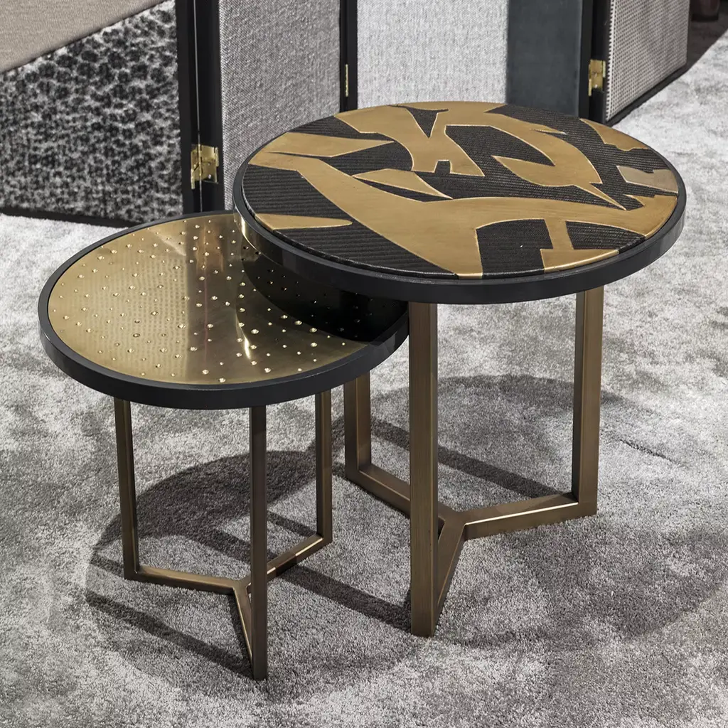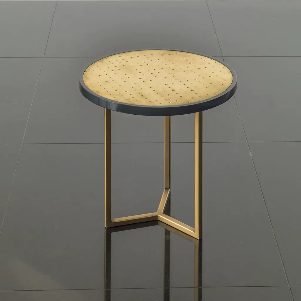 A simple shape meets outlandish opulence in the Romeo Wood and Brass Side Table. On a simple base with a round top, the side table is adorned with brass detailing from top to bottom, ensuring it does not go unnoticed in even the most luxurious of lounges or living spaces.