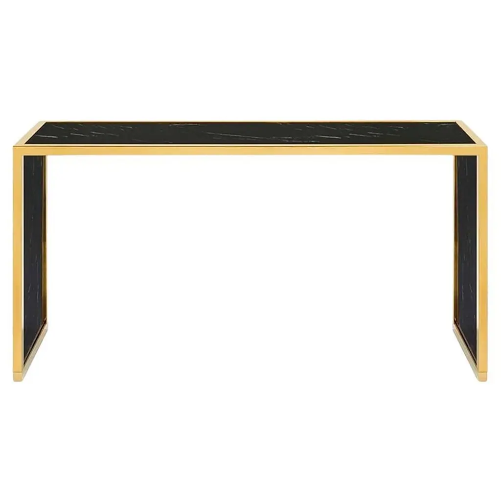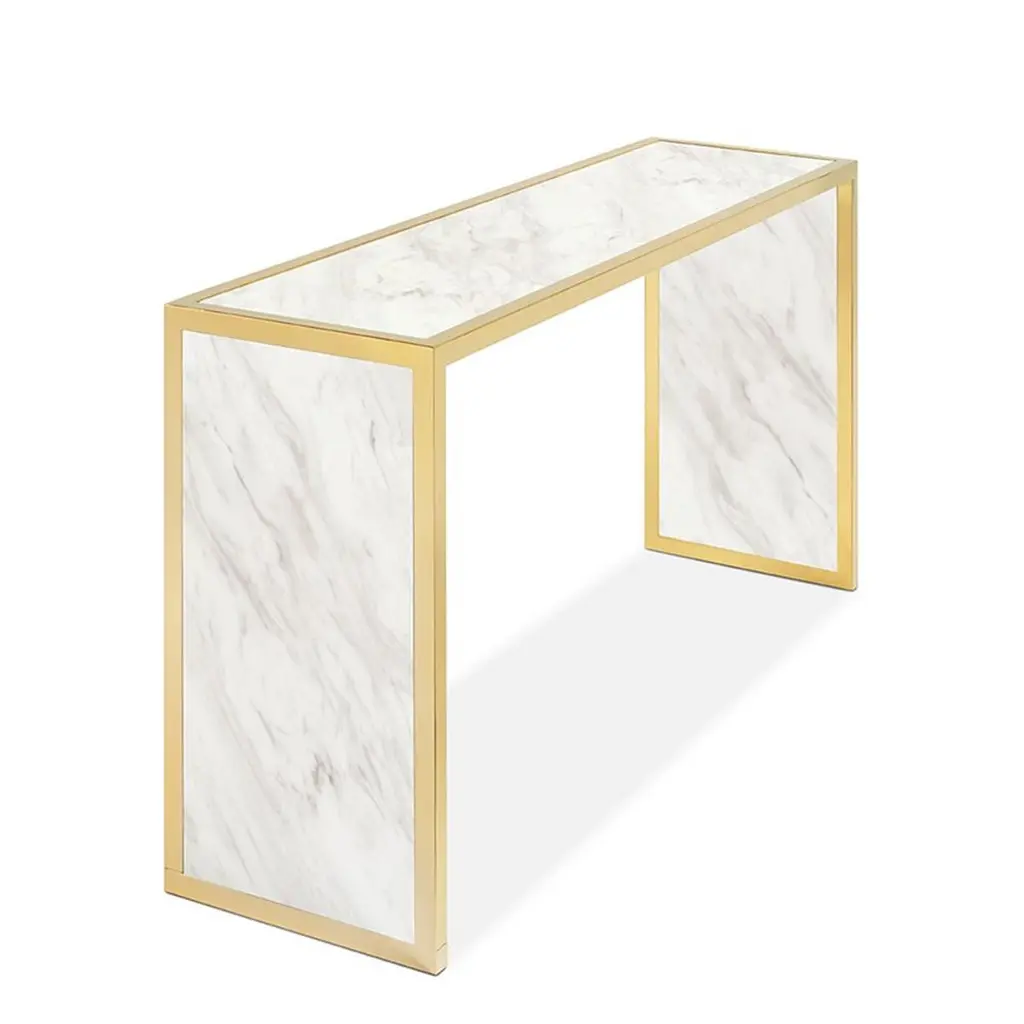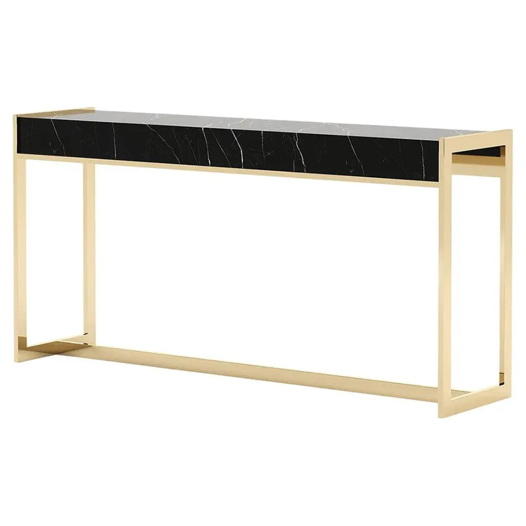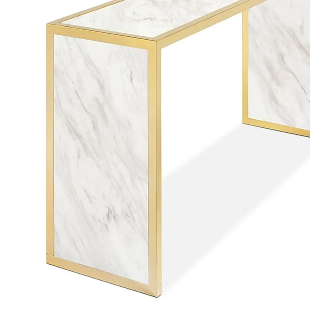 Console table Romer white with steel structure inpolished gold finish, with marble white top and withmarble white sides.