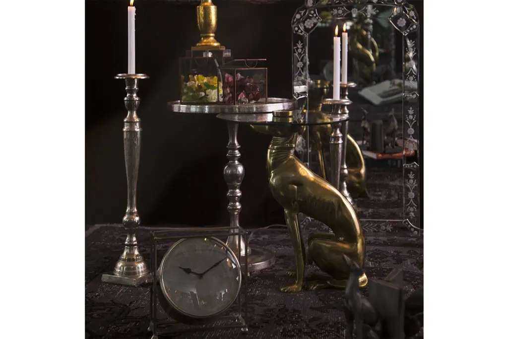 Adding sophistication to your living or family room, the Romina Accent Table will sit pretty beside any sofa, loveseat or chair. An elegant round table top sits on an ornate carved stem with a round base to provide stability and support. Beautifully crafted of lightweight aluminum for easy transport, this decorative, vintage-inspired table is offered in your choice of antique metallic finishes to complement your taste and existing decor.