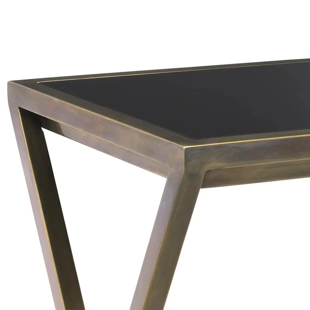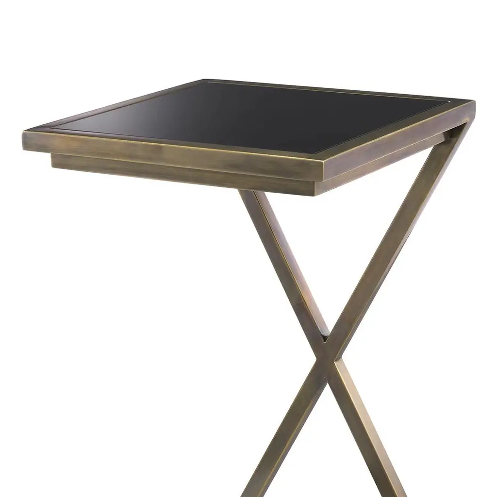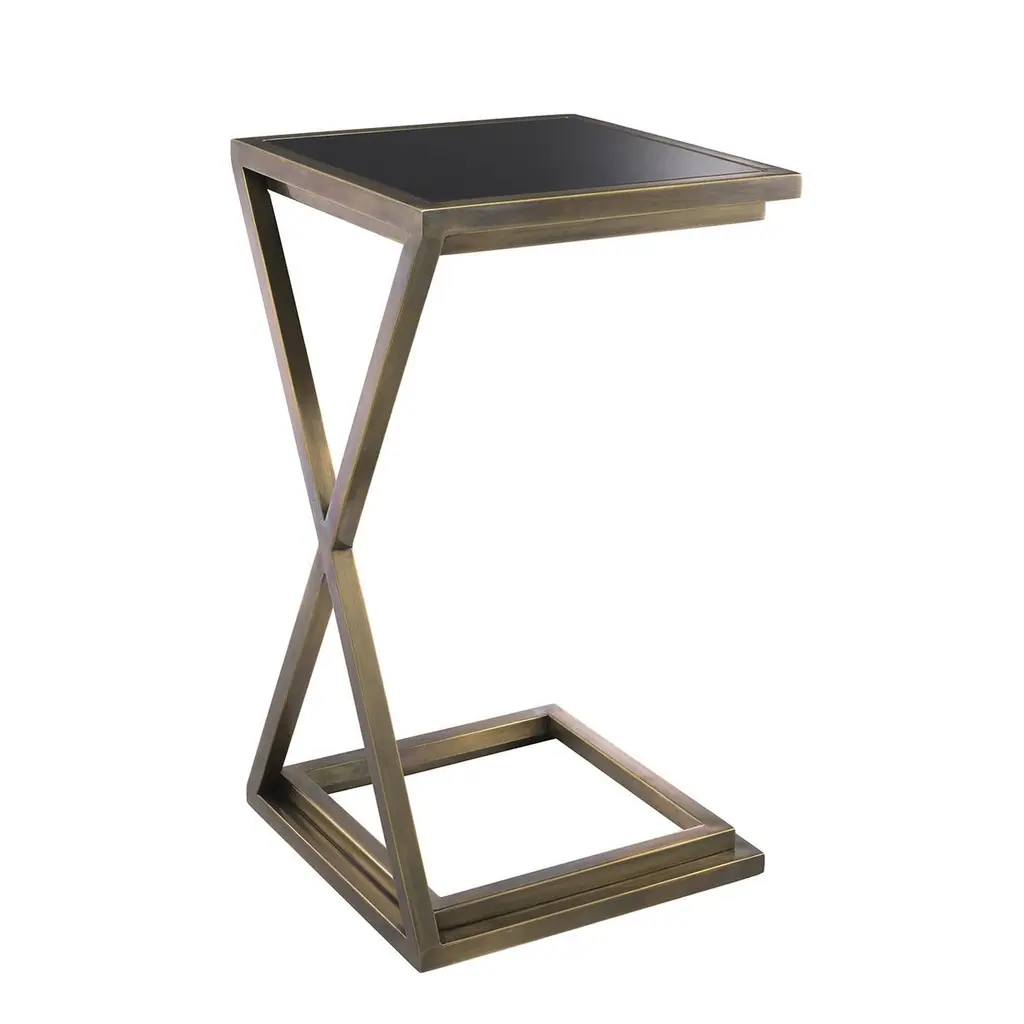 Side table Romy brass with all structure in stainlesssteel in vintage brass finish, with blackened glass top.