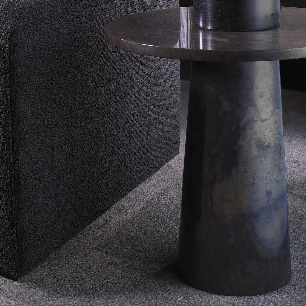 Side Table Romy with base structure in woodenstructure covered with solid polished marble and with table top in solid polished marble.Each piece is a bit different in veining and colors.
