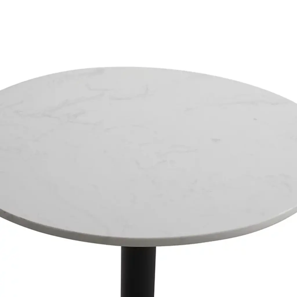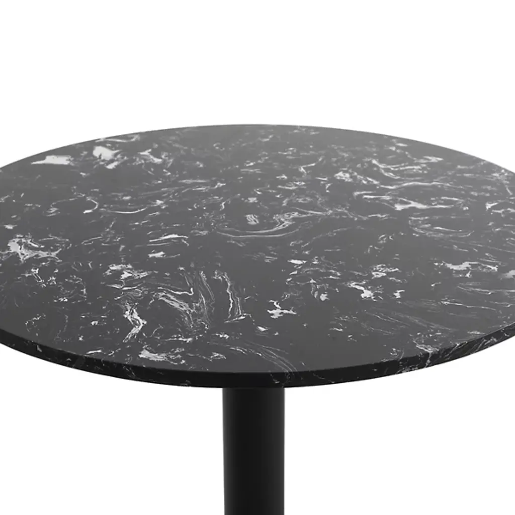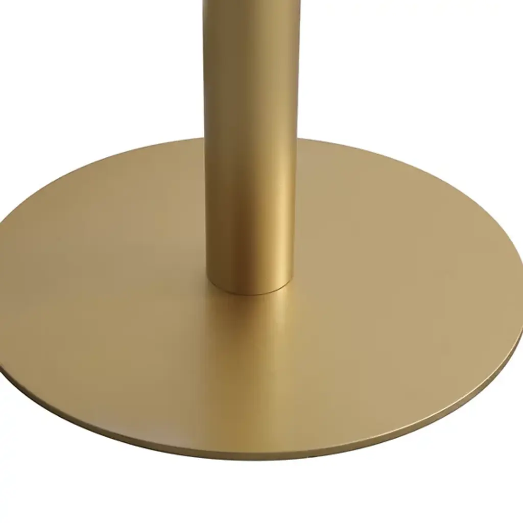 The Ronan Bar Table from Elegant Lighting elevates dining through faux marble surface treatment paired with industrial steel construction. The matte black and gold powder coating creates tonal depth across the metal base while the weighted foundation ensures stability. The contrasting materials of stone-look surface and metal framework establish visual interest through their complementary textures and finishes. This pub table brings sophisticated bistro styling to interior spaces while maintaining compact proportions. It is suitable for intimate dining experiences and efficient space utilization in various room configurations.