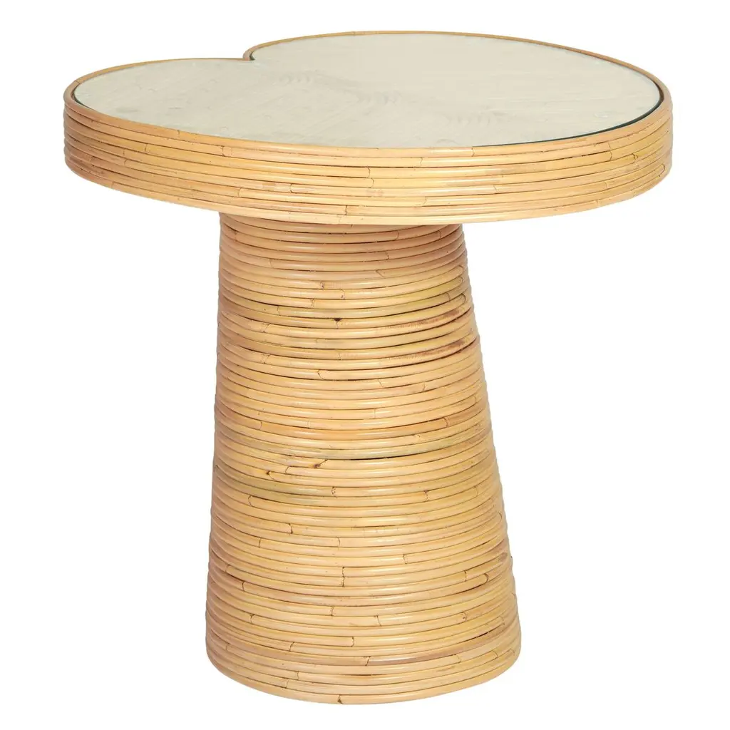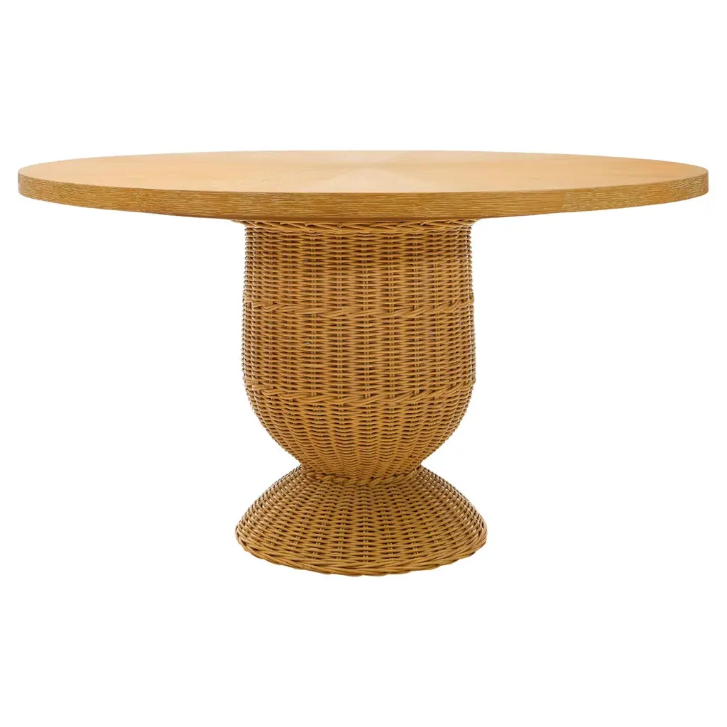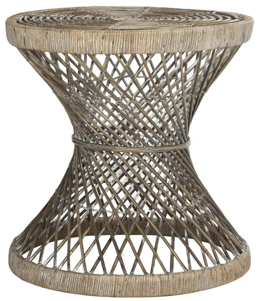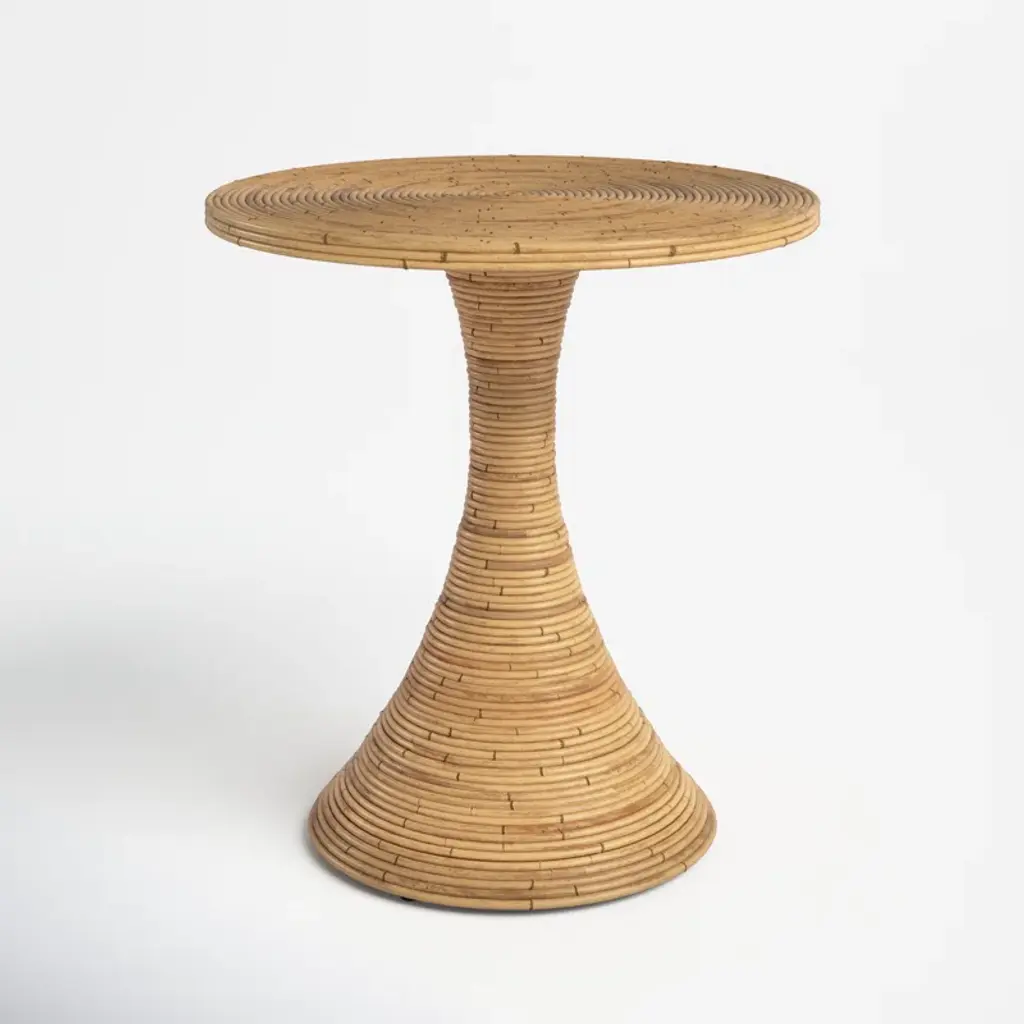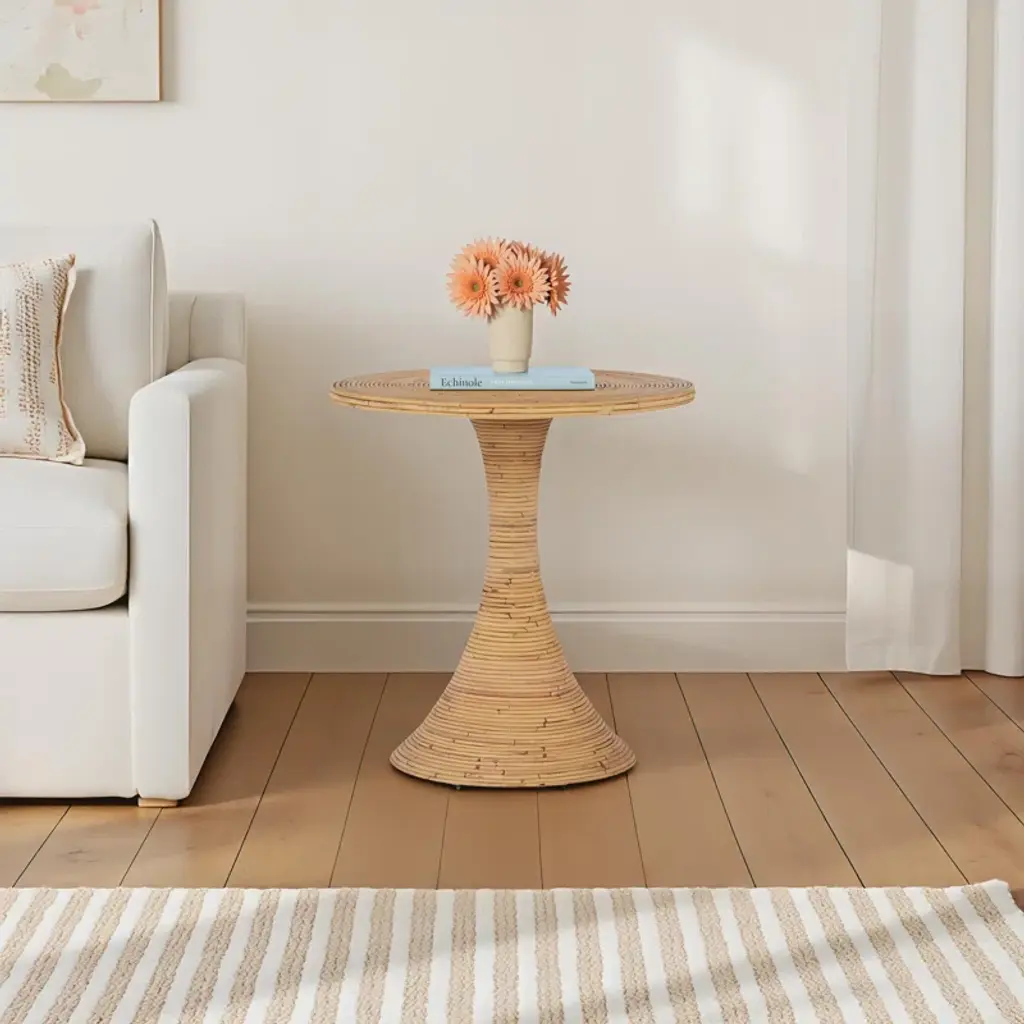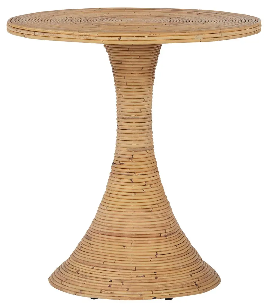 Punctuate sofas or a favorite side chair with the Rooney accent table, a pedestal-shaped furnishing gorgeously wrapped in natural rattan from top to bottom.