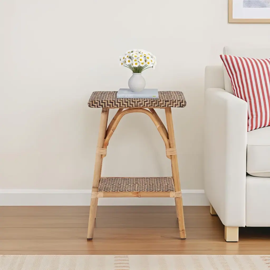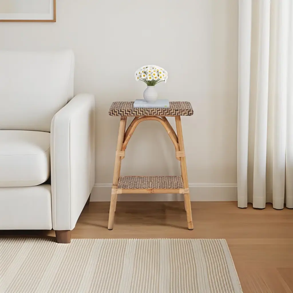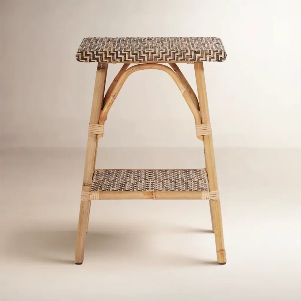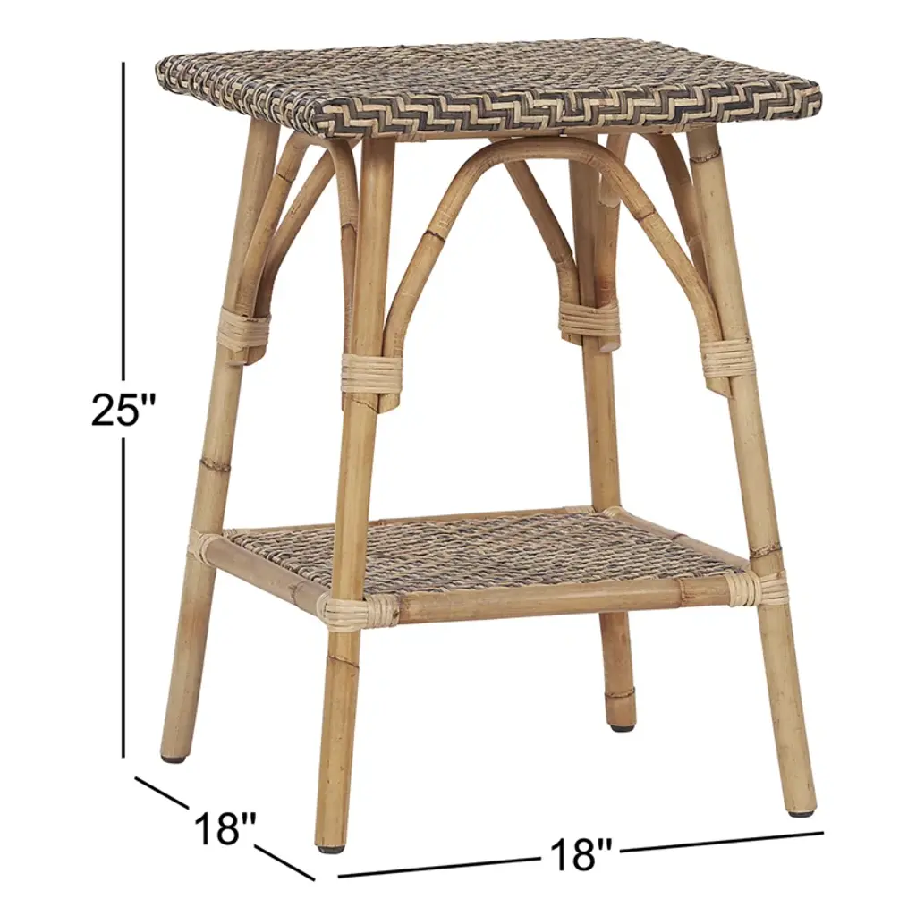 The Rooney accent table brings gorgeous texture and depth to any space with its natural rattan body, open-air silhouette, and its weaved, two-toned tabletops.