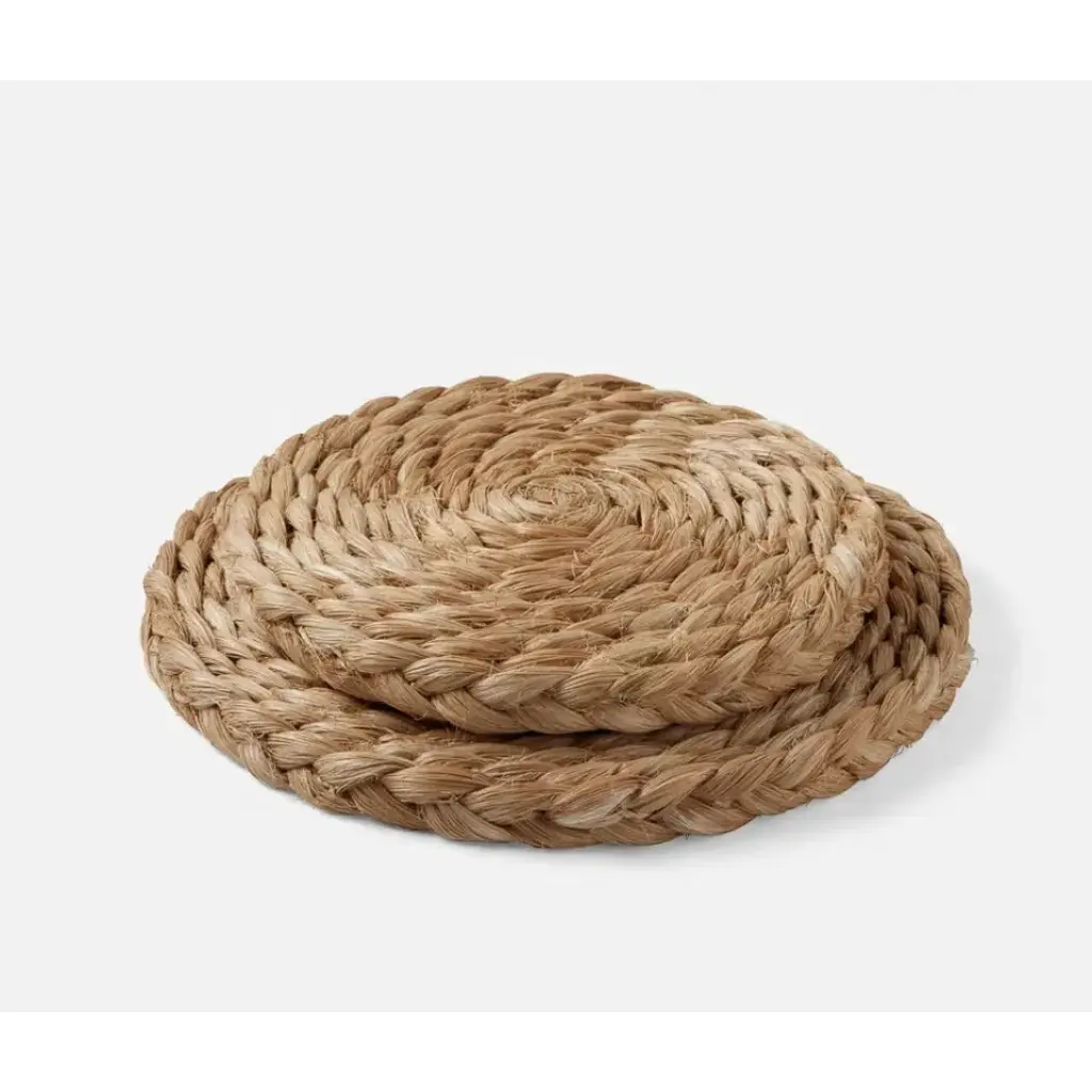 Introducing the capitan side table - a whimsical addition to any room! Crafted with natural braided rope in a playful scalloped shape, this table brings a touch of rustic charm to your space. Place it anywhere for a quirky yet functional piece.