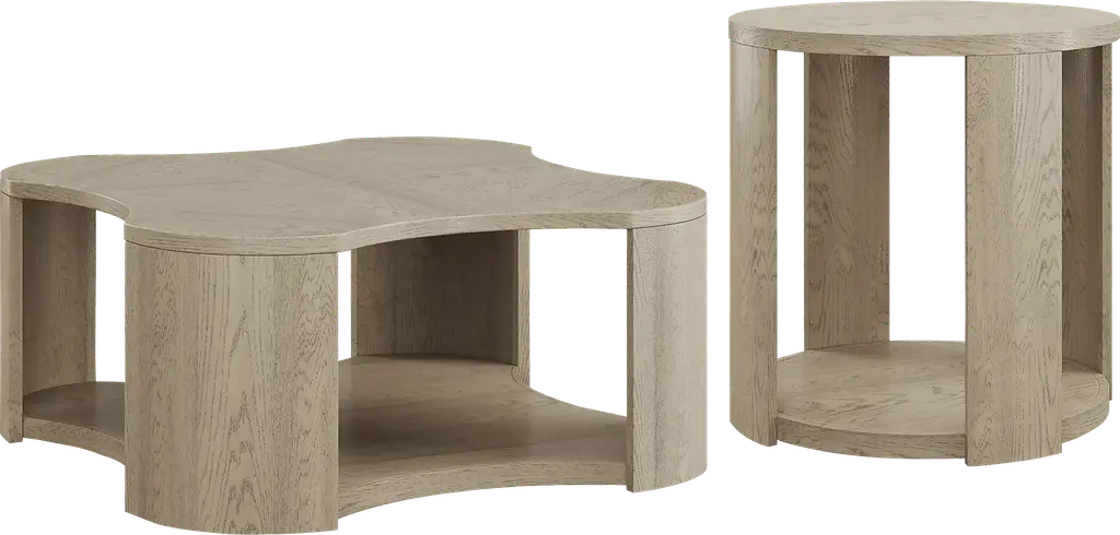 With built-in features and design details to delight guests and family, the Rosalie table set features functional works of art that everyone will want to come back to again and again. This transitional set is beautiful from every angle with unique and contrasting espresso and gray oak veneers. The intricately designed tempered glass inlay in the cocktail table adds the perfect touch of class to your family relaxation experience. Casters under the bottom shelf make it a breeze to move this table whenever desired. The matching end table table also features a round top and convenient lower shelf.